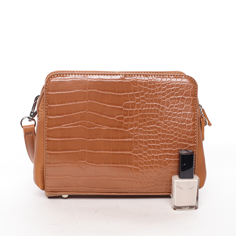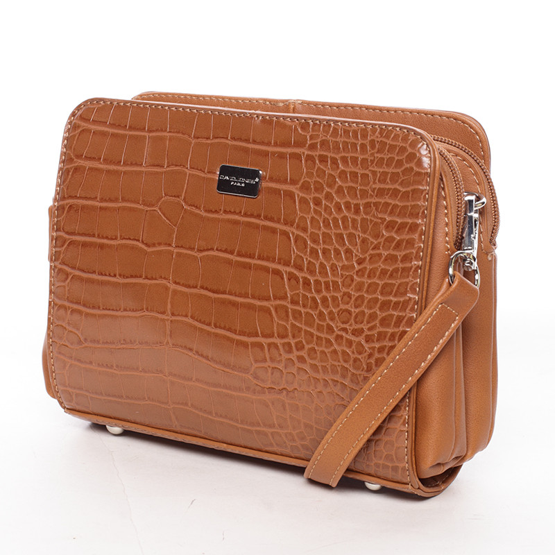 Dámská crossbody kabelka koňaková s hadím vzorem - David Jones Snake