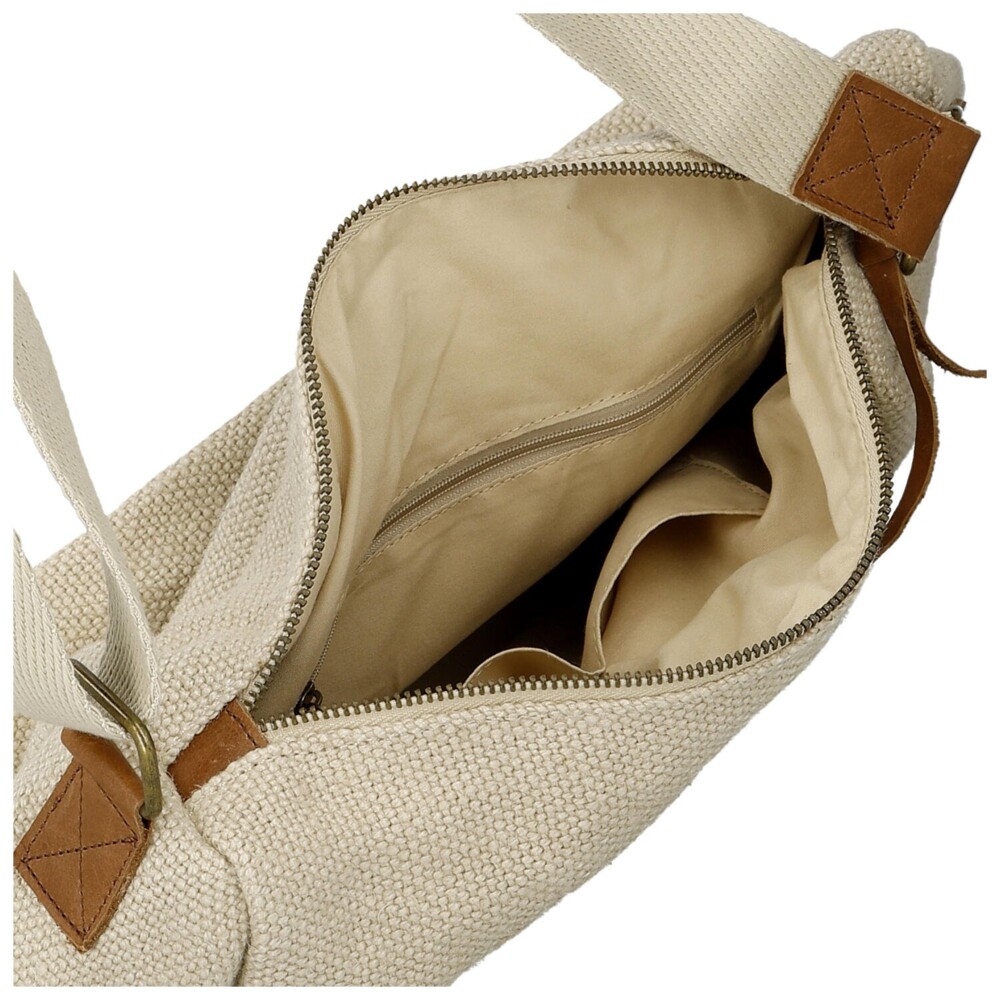 Lehkost, styl a pohodlí v jednom! Tato textilní crossbody kabelka v čistém designu zaujme svou jednoduchou elegancí a jemnými hnědými detaily, které jí dodávají přirozený a nadčasový vzhled. Hlavní kapsa na zip nabízí dostatek prostoru pro vaše každodenní nezbytnosti a uvnitř najdete praktické kapsičky v podšívce. Nastavitelný textilní popruh zajišťuje pohodlné nošení přes rameno i do kříže. Mosazné kování krásně doplňuje hnědé detaily a dodává kabelce jemný vintage nádech. Objednejte ještě dnes a vyzkoušejte, vrátit ji můžete až za 30 dnů!