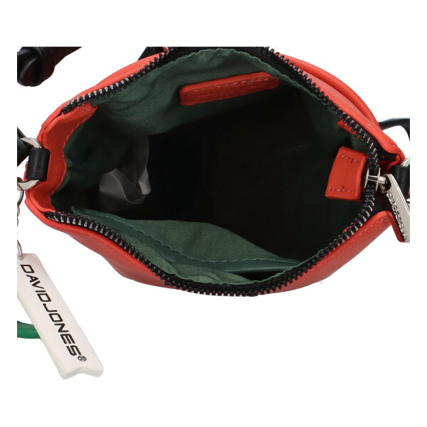 Žhavé novinky přímo z Francie, v podání světoznámé značky David Jones, jsou právě nyní na našem eshopu! Objednejte tuto novinku na trhu ještě dnes, vyzkoušejte, vrátit jej můžete až za 30 dnů! Tento moderní a originální kousek je menších rozměrů, skvěle padne k elegantnějšímu i ležérnímu outfitu a hodit se Vám bude ve městě i při zábavě s přáteli. Kabelka je měkčí s lehce pevnějším oválným dnem. Hlavní kapsu otevřete zipem. U spony popruhu najdete originální přívěsek s logem značky. Další kapsu najdete na zadní straně kabelečky a chybět Vám nebudou kapsičky ani uvnitř hlavní části.
