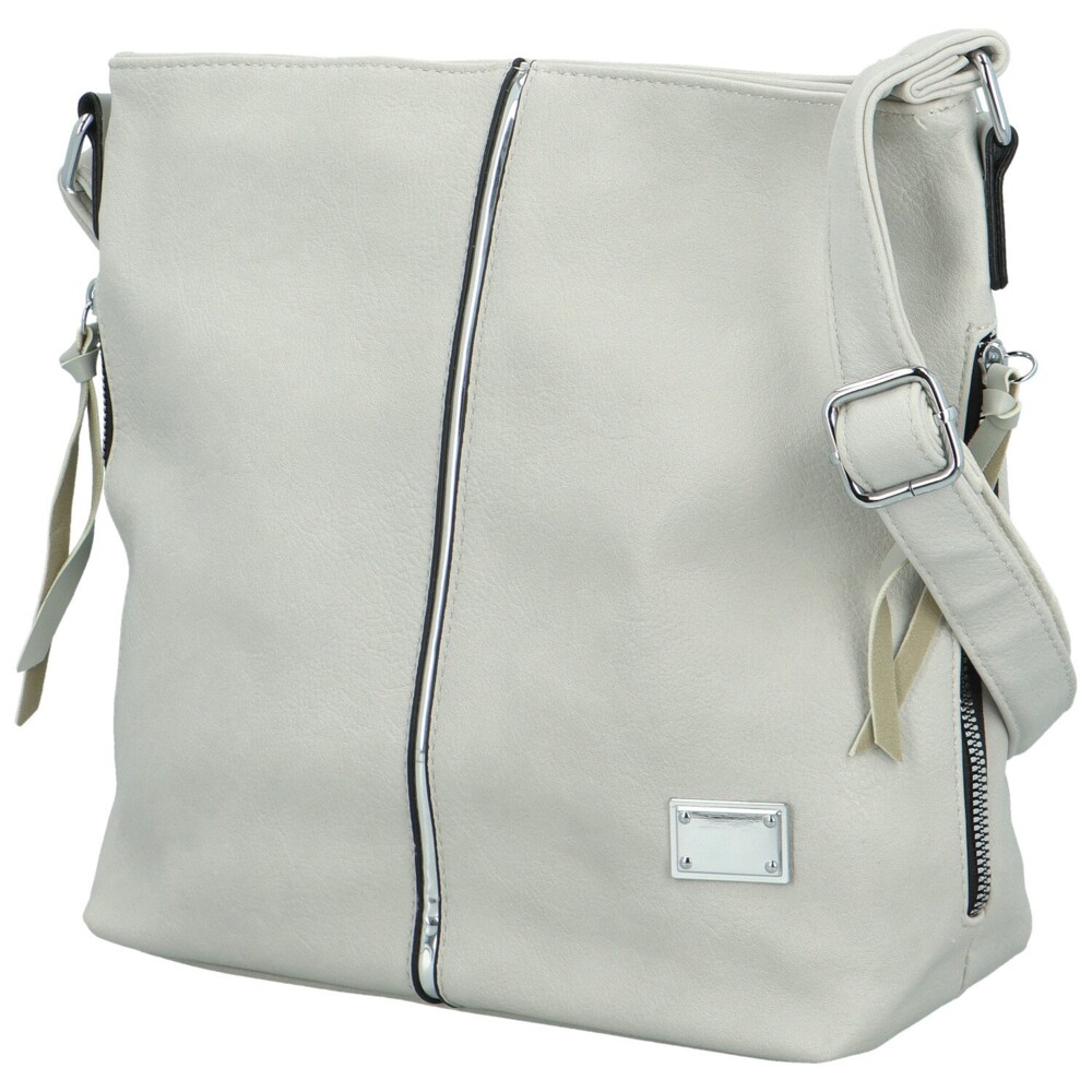 Praktická crossbody kabelka s decentní černou linkou se stříbrným proužkem vedoucí svisle přes přední stranu, dodává kabelce zajímavý vzhled. Na přední straně je i stříbrná destička. Kabelka má zipové svislé kapsičky na bocích, také ve stříbrné barvě. Pro bezpečné uložení vašich věcí je hlavní kapsa zajištěná zipem. Uvnitř nechybí boční menší kapsičky v podšívce i středová zipová kapsa, která prostor dělí a vy si tak vše krásně uspořádáte. Její popruh je nastavitelný a umožňuje tak pohodlné nošení na rameni i do kříže. Zadní část nabízí poslední zipovou kapsičku. Objednejte ještě dnes a vyzkoušejte, vrátit ji můžete až do 30 dnů!