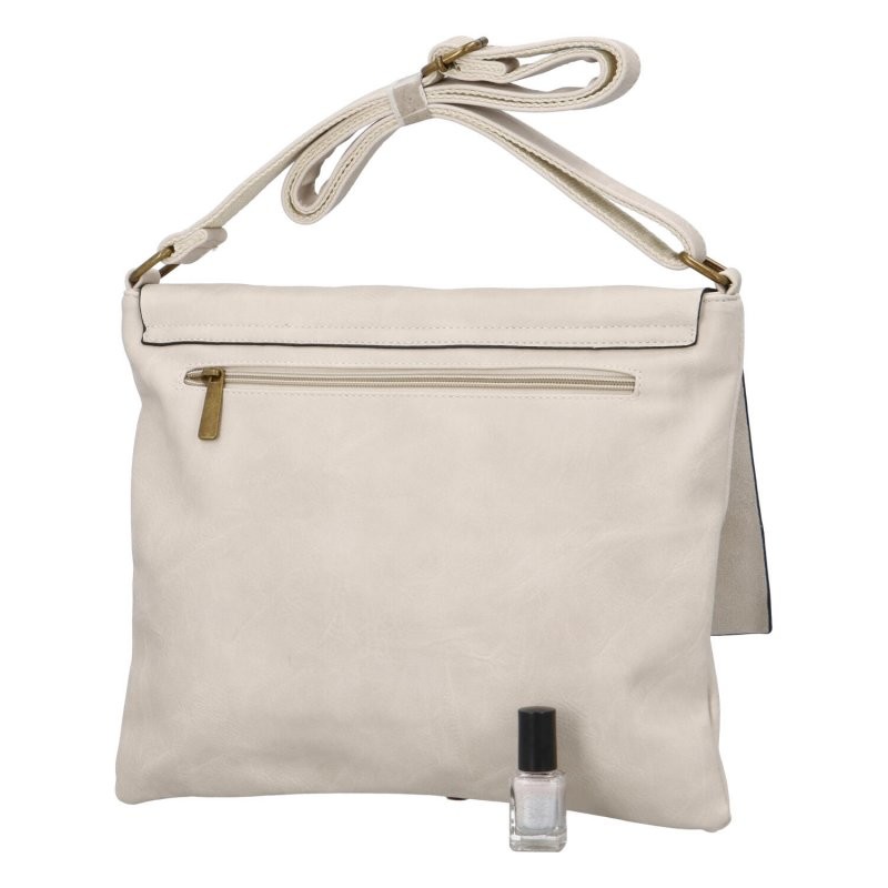 Větší měkká crossbody kabelka, kterou můžete nosit i přes rameno se podobá poštovním taškám. Objednejte ještě dnes a vyzkoušejte, vrátit ji můžete až za 30 dnů! Italská značka Paolo Bags přináší levnou, módní a stylovou kabelku ve světle béžové barvě. Stane se skvělým doplňkem ve městě, na procházce i při zábavě s přáteli. Hlavní kapsu na zip překrývá klopa, která se uzavírá magnetickým cvokem. Podšívka klopy je z umělého semiše. Pásek na klopě kabelky, ke kterému se pojí magnet, má podobu černého "koženého" pásku s mosaznou sponou. Nechybí zde kapsa se zipem na zadní straně. Popruh je podšitý látkou. A vnitřní prostory nabídnou tři menší kapsičky na telefon, drobnosti a cennosti.