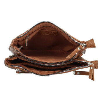 Dámská, luxusně elegantní, měkká, stylová crossbody kabelka z eko kůže od značky Enrico Benetti. Krásná malá kabelka do města, na rande i za zábavou. Světle hnědý model má dvě hlavní kapsy se zipy. Nosit ji lze i přes rameno, případně jako organizér v kabelce, její popruh je totiž celý odnímatelný. Objednejte ještě dnes a vyzkoušejte, vrátit ji můžete do 30ti dnů.