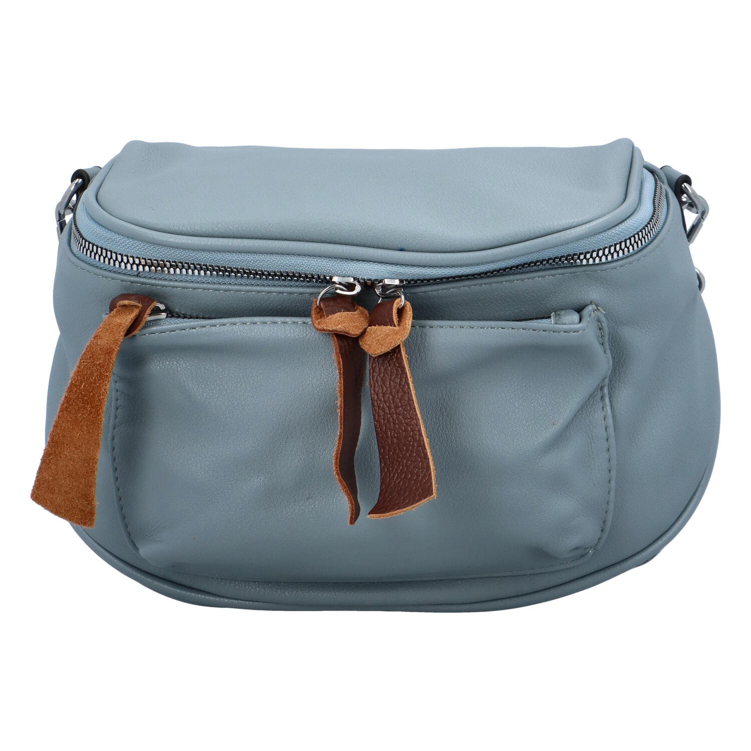 Dámské kabelky od značky Paolo Bags mají oblý tvar a nosit je lze přes rameno i crossbody. Tento světle modrý model Vám poslouží jako skvělý módní doplněk ve městě i na procházce v parku. Objednejte ještě dnes a vyzkoušejte, vrátit ji můžete až za 30 dnů! Menší praktická kabelka se otevírá zipem s hnědým jezdcem. Uložíte si sem veškeré potřebné věci jako je telefon, peněženka i klíče.
