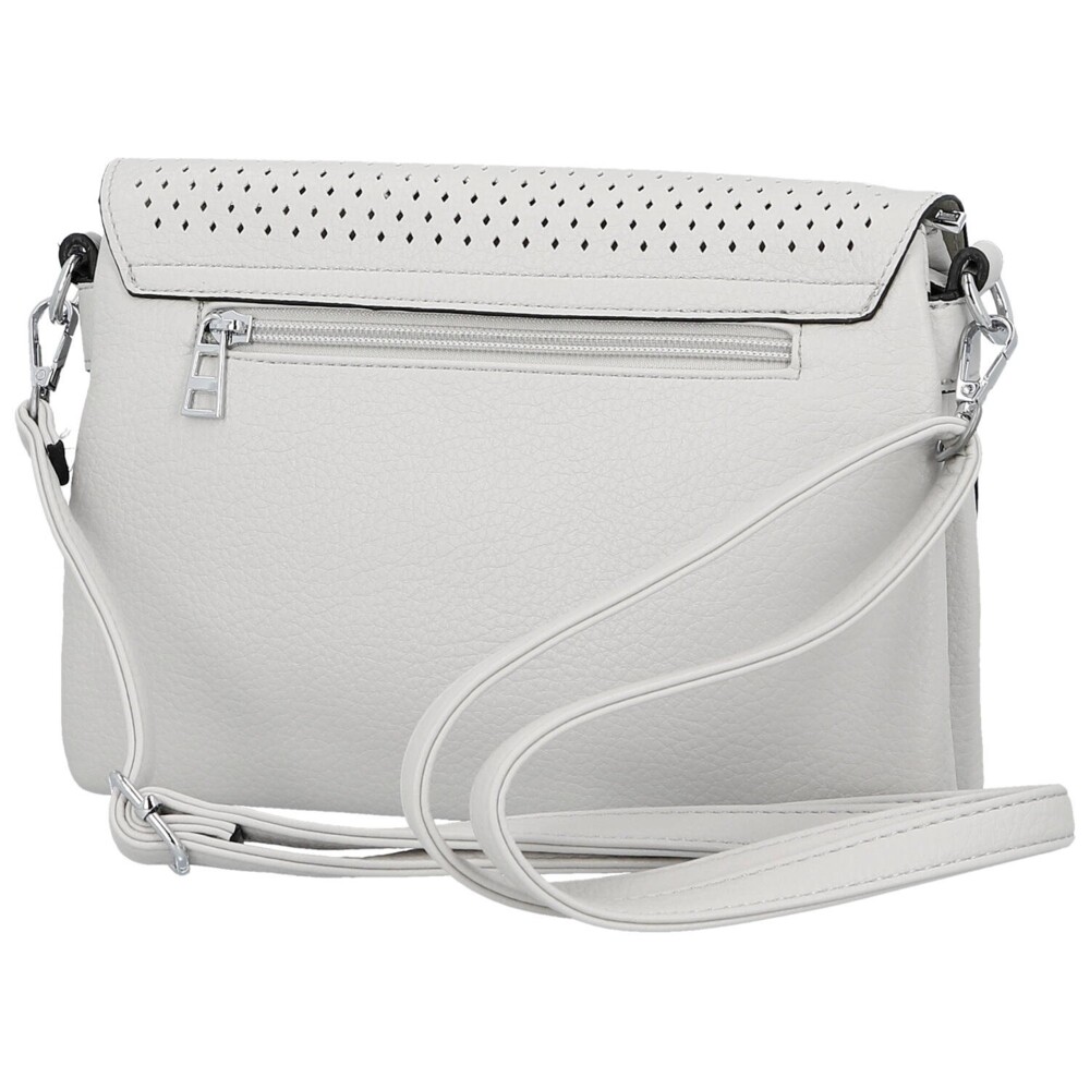 Stylová malá crossbody kabelka z koženky zaujme elegantním designem a promyšlenými detaily. Přední stranu zdobí perforovaná klopa se zapínáním na magnetický druk, která kabelce dodává moderní a svěží vzhled. Jemné stříbrné kování krásně podtrhuje její nadčasový styl. Po otevření vás čeká hlavní kapsa na zip s prakticky členěným interiérem. Vnitřní prostor je rozdělen do tří částí, přičemž prostřední přihrádka je navíc zajištěná zipem. Na zadní straně nechybí další zipová kapsa. Dlouhý tenký koženkový popruh je nastavitelný i odnímatelný, takže si kabelku snadno přizpůsobíte svému stylu nošení. Elegance v praktickém provedení! Objednejte ještě dnes a vyzkoušejte, vrátit ji můžete do 30 dnů.