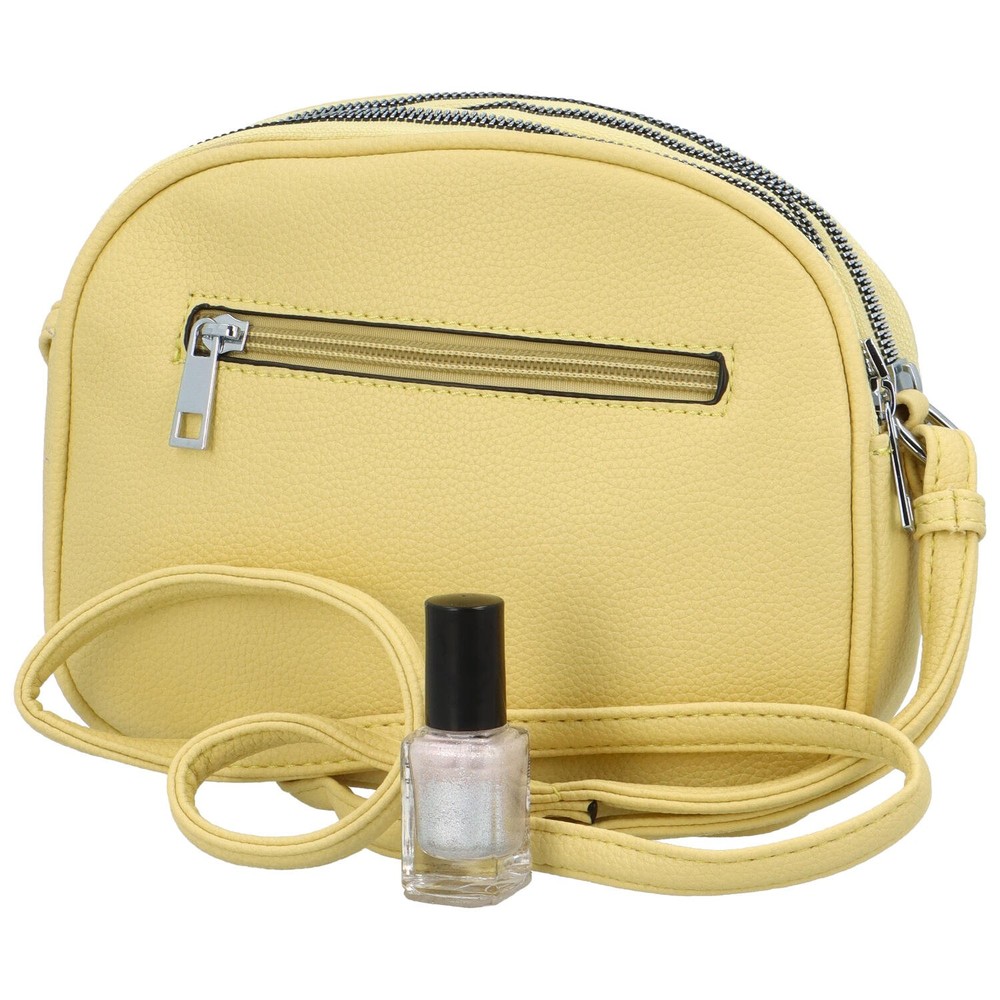 Představujeme moderní a jednoduchou kabelku značky Maria C. Malá, oblá kabelka se nosí crossbody, přes tělo nebo přes rameno. Jde o světle žlutý trendy model do města, ale hlavně za zábavou! Pojme základní potřebné věci, jako je telefon, klíče, peněženka a make-up. Má lehce vrásčitou strukturu, tři kapsy na zip a nechybí ani kapsičky na drobnosti. Objednejte ještě dnes a vyzkoušejte, vrátit ji můžete až za 30 dnů! Koupě této kabelky nemůže být chyba!