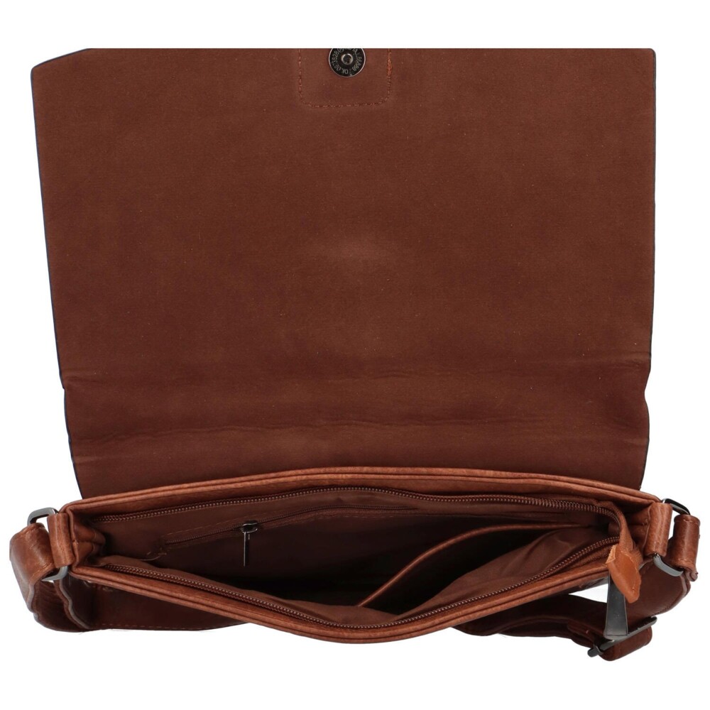 Měkká crossbody kabelka, kterou můžete nosit i přes rameno. Kabelka se podobá poštovním taškám, ale je velmi oblíbená pro svůj příjemný materiál. Stane se skvělým doplňkem na každodenní nošení. Hlavní kapsu na zip, kterou překrývá klopa na magnetický druk a okrasná přezka. Uvnitř najdeme menší boční kapsičky v podšívce. Na zadní straně nechybí kapsička na zip. Popruh je podšitý látkou a dá se nastavit na vámi požadovanou délku. Tak objednejte ještě dnes a vyzkoušejte, vrátit ji můžete do 30ti dnů.