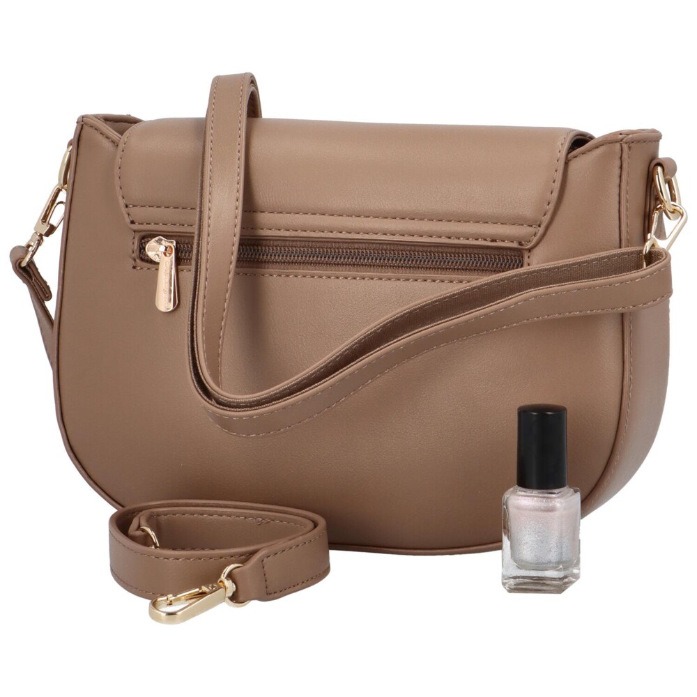 Dámská tmavě béžová crossbody kabelka od značky David Jones. Kvalitní koženka, elegantní vzhled a zlaté kování dělají z tohohle kousku ideální doplněk k oživení Vašeho outfitu. Hlavní prostor kabelky je uzavíratelný na zip. Uvnitř jsou malé postranní přihrádky. Přihrádka na zip se nachází i na zadní straně kabelky. K dispozici jsou dva odnímatelné popruhy, které lze měnit dle potřeby. Kratší popruh poslouží k nošení na rameni nebo v ruce a delší popruh na nošení do kříže nebo přes rameno. Objednejte a vyzkoušejte, kabelku můžete vrátit do 30ti dnů.