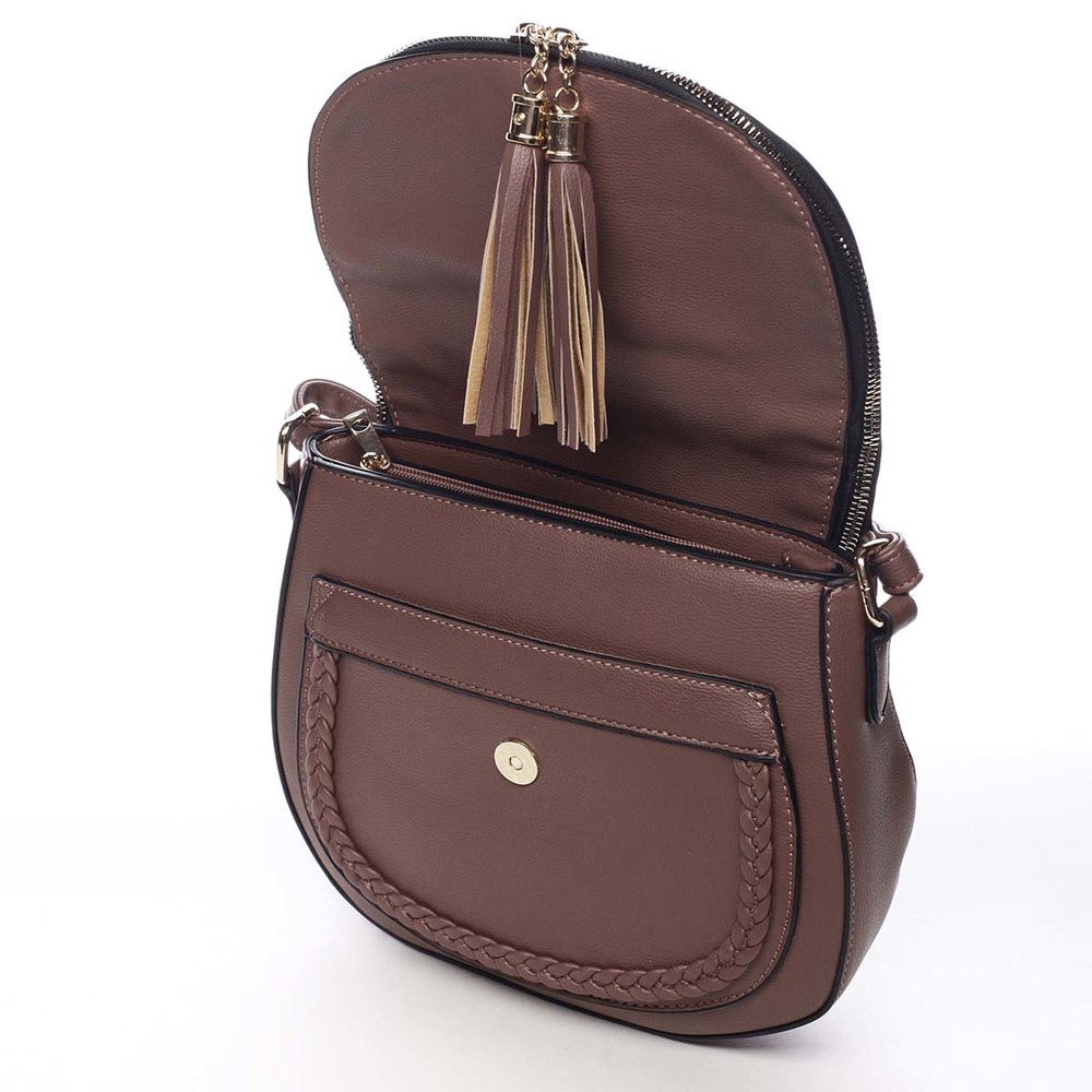 Originální kabelka, která oživí Váš outfit. Crossbody kabelka, kterou budete mít po svém boku ve městě nebo na párty. Módní kabelka od značky Maria C Vám nabídne klopu s duálním zipem, na kterém visí střapce. Zde je možné ukládat drobnosti, které je potřeba mít po ruce. Listová kabelka je pevnějšího oválného tvaru. Pod klopou na magnetický cvok je originální volná kapsička na další drobnosti. Hlavní kapsa je na zip, uvnitř se prostor dělí přepážkou ve formě kapsy na zip. Najdete zde i dvě další kapsičky na kosmetiku. Objednejte ještě dnes a vyzkoušejte, vrátit ji můžete až za 30 dnů! Dopřejte si v šatníku změnu a vylaďte se na podzimní a zimní měsíce.