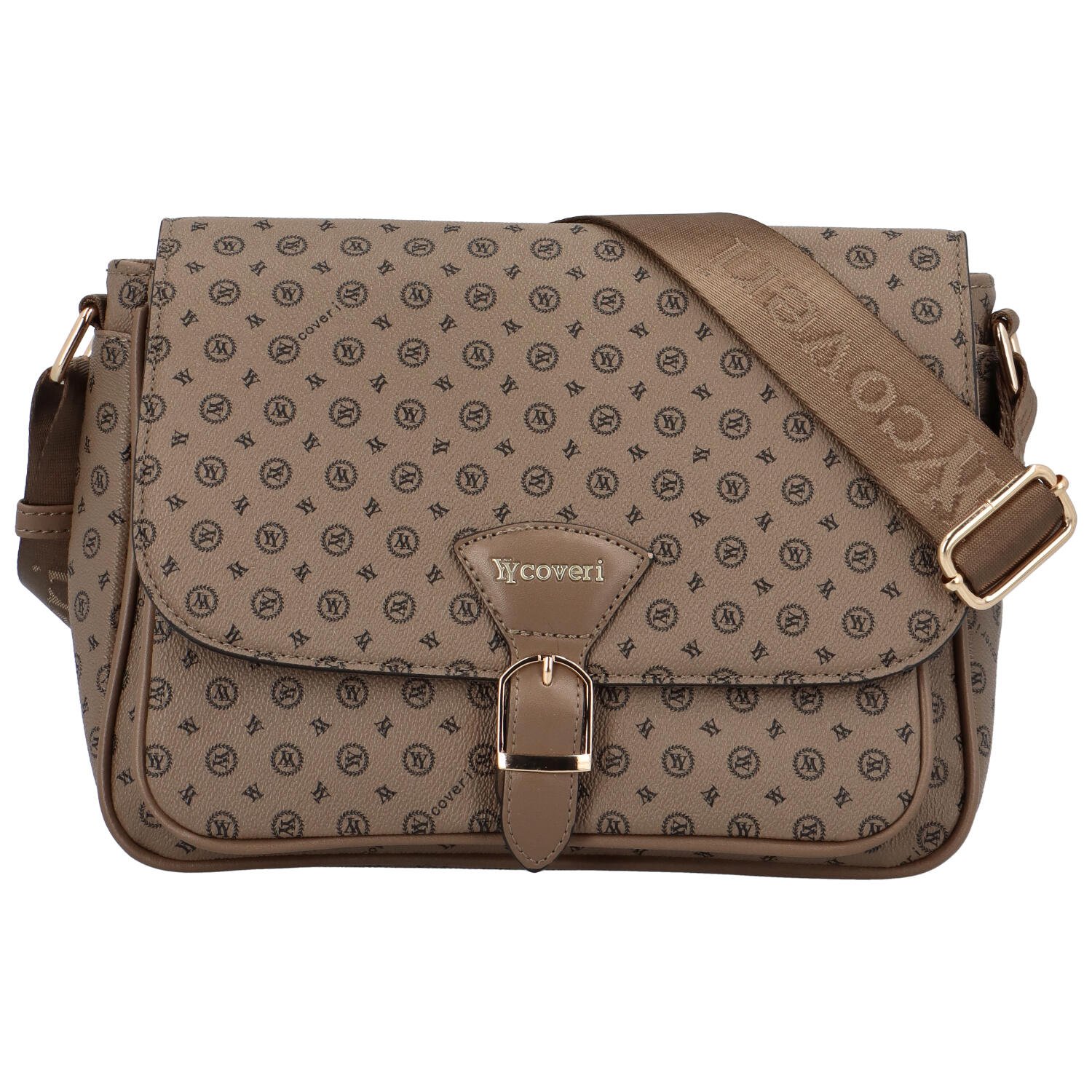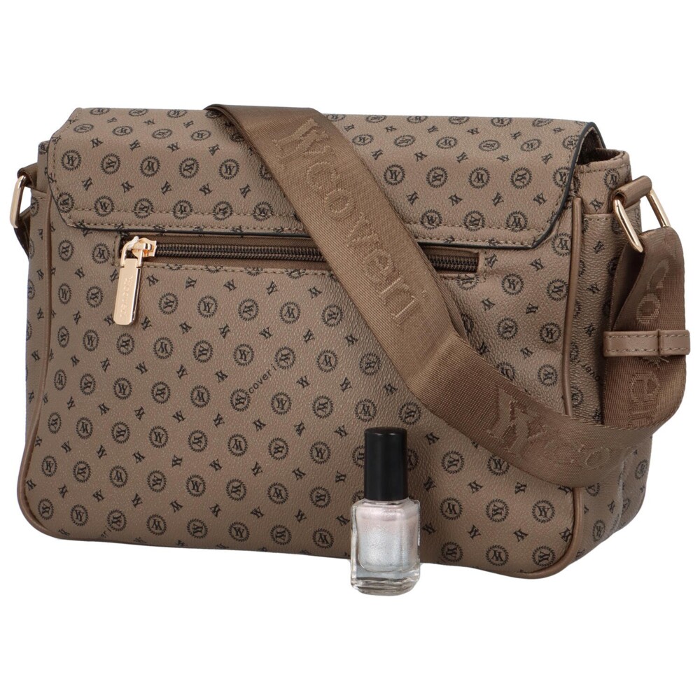 Trendy dámská crossbody kabelka s módním potiskem tmavě béžová - Coveri Segunda