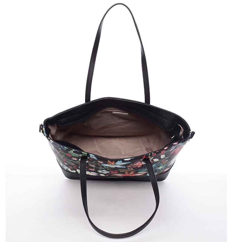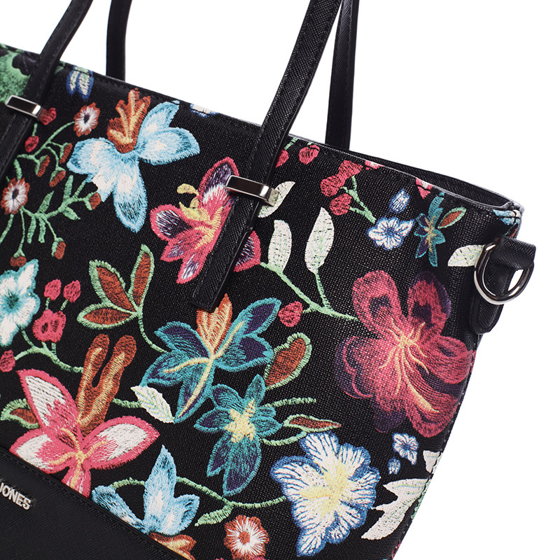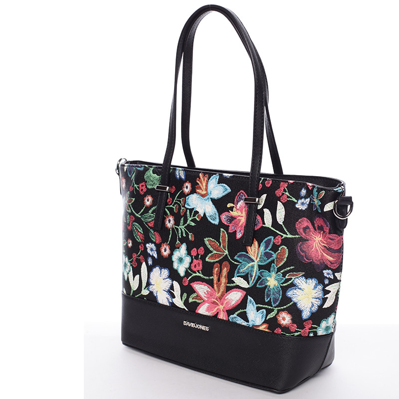 Neváhejte a objednejte si úžasnou kabelku! Vrátit ji můžete až za 30 dnů! Elegantní a originální květinová kabelka by neměla chybět v šatníku žádné ženy. Užívejte krásného jara nebo slunného léta právě s touto kolekcí květinových kabelek David Jones. Střední velikost Vám bude vyhovovat pro každý den. Nosit ji můžete v ruce, na předloktí, nebo přes rameno, díky popruhu, který lze odepnout a nastavit správnou délku. Květinový design má kabelka pouze z přední strany. Zbytek kabelky je v úpravě saffiano, a to i spodní část, které nechybí spony proti odření a zašpinění povrchu kabelky. Taška nabízí slušný prostor pro Vaše osobní i další věci. Nabízí i pár dalších kapsiček na drobnosti. Dopřejte si originalitu každým dnem!