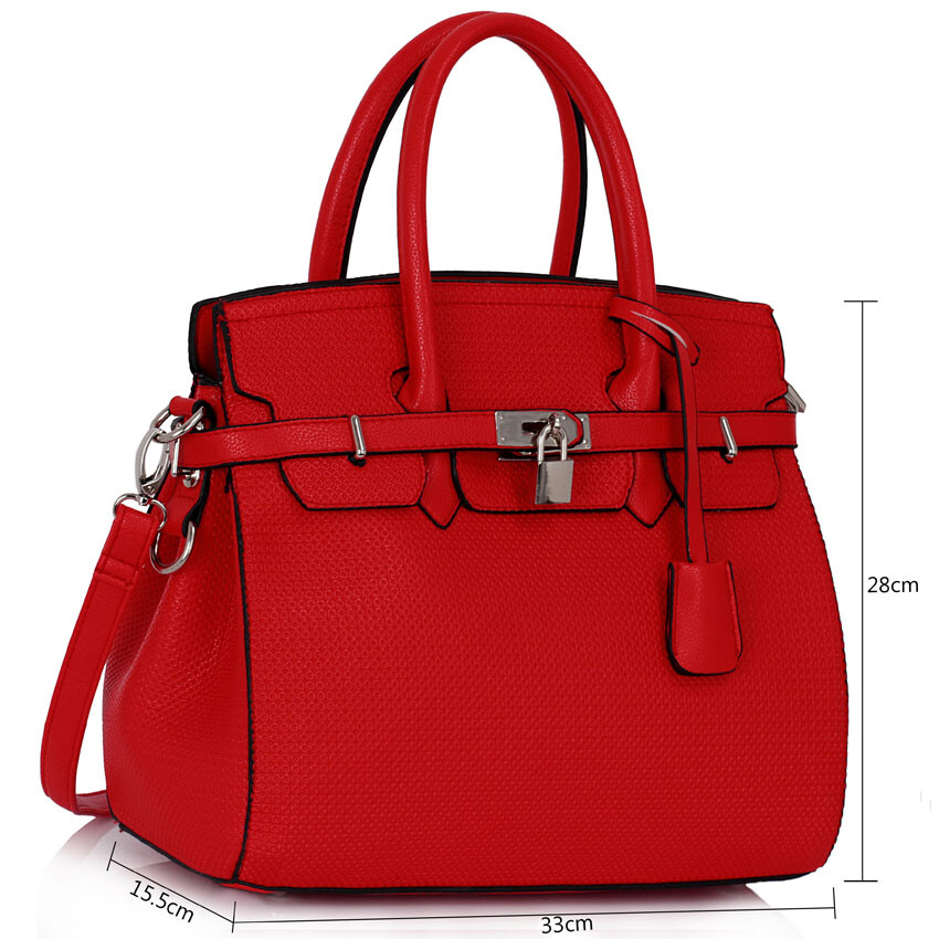 Červená kabelka L&S fashion ve stylu Birkin (Hérmes), na zámeček. Uvnitř - kapsa na zip a dvě bez zipu.
