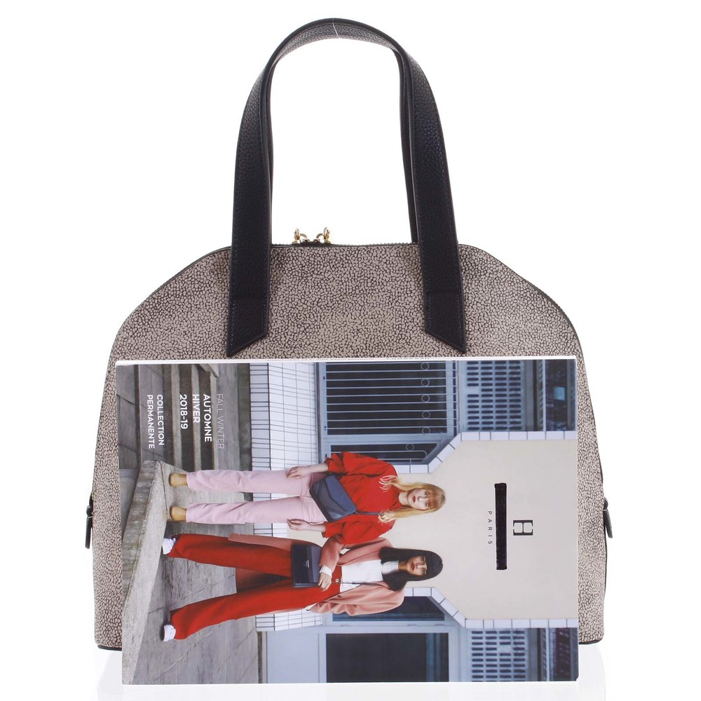 !SLEVA - bez originálního obalu! Novinka! Béžovo černá střední kabelka do ruky z umělé kůže značky Laura Biagiotti. Objednejte ještě dnes a vyzkoušejte, vrátit ji můžete až za 30 dnů! Kabelka má jemný vzor a i přesto, že se dá nosit v ruce nebo na předloktí, vejde se do ní opravdu vše potřebné. Kabelka je celkově pevnější. Dno je navíc opatřeno zlatými kovovými cvočky pro dobrou stabilitu a proti oděrkám. Zip, který vede do jediného vnitřního prostoru, má dva jezdce a rozepnete ho po bocích až téměř ke dnu kabelky (9 cm ode dna na každé straně). Vyhnete se tak hledání maličkostí malým otvorem. Kabelka má dvě ucha, kde na jednom z nich nechybí ikonický přívěsek s logem značky, jak vídáme u všech modelů této kolekce.