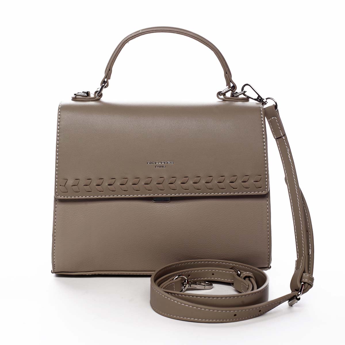 Originální menší kabelka od značky David Jones. Objednejte ještě dnes a vyzkoušejte, vrátit ji můžete až za 30 dnů! Nechte se okouzlit velmi vkusnou, tmavě béžovou, kabelkou. Design kabelky je nápaditý, módní a praktický. Využít ji můžete ve městě i ve společnosti, stačit Vám tak bude jeden kousek kamkoliv. Kabelka je pevnější, má pevné dno s kovovými cvoky a proto skvěle drží tvar, není však tvrdá. Ploché ouško, díky kterému ji můžete nosit v ruce nebo na zápěstí, je pevné. Nosit ji lze ale i přes rameno, s použitím odnímatelného popruhu. Klopa kabelky je příjemně doplněna o koženkové prošití a otevírá se pomocí kovového klipsu, který stačí lehce zmáčknout ve směru "nahoru". Hlavní kapsa se zipem Vám nabídne slušný prostor na osobní i další drobné věci, přijde Vám vhod kapsička na telefon i na klíče. Využít můžete i kapsičku se zipem na zadní straně kabelky. ✅ Doporučujeme na občasné pracovní schůzky, k úzké sukni nebo kostýmku, rozhodně zaujmete.