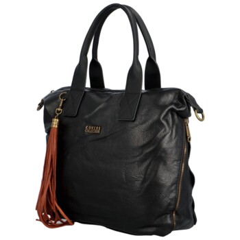 Praktická velká dámská kabelka ze syntetické měkké kůže. Kabelka má uvnitř hlavního prostoru, který se uzavírá na zip, i větší postranní kapsu na zip, nechybí ani malé boční kapsičky. Na zadní straně je vám k dispozici další malá kapsička na zip. Přední část kabelky zdobí logo značky Coveri a větší třásňový ozdobný přívěsek. Bonusem jsou pak postranní zipy k rozšíření nebo zúžení kabelky. Díky přídavnému dlouhému popruhu lze kabelku nosit nejen v ruce, ale i na rameni či do kříže. Objednejte ještě dnes a vyzkoušejte, vrátit ji můžete do 30ti dnů!