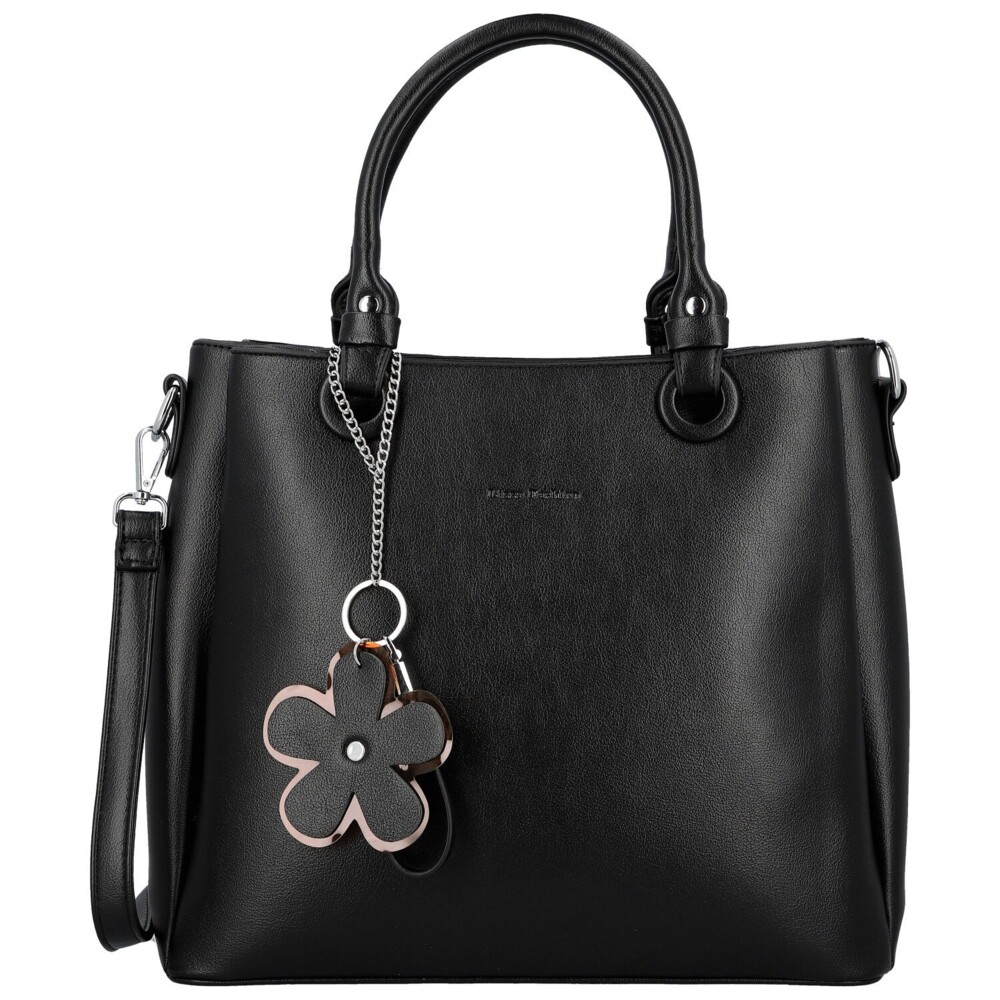 Ozdobte svůj look luxusní kabelkou do ruky, která kombinuje eleganci s praktičností. Přední stranu zdobí jemný květinový přívěšek, který jí dodává ženský a sofistikovaný šarm. Kabelka nabízí tři hlavní kapsy na zip, uvnitř kapsičky v podšívce, a zadní zipovou kapsou pro rychlý přístup. Krátká pevná ucha perfektně padnou do ruky, k tomu přídavný dlouhý popruh pro pohodlné nošení přes rameno nebo křížem. Stříbrné kování podtrhuje luxusní vzhled, ideální společník pro každodenní nošení. Objednejte ještě dnes a vyzkoušejte, vrátit ji můžete až do 30 dnů!