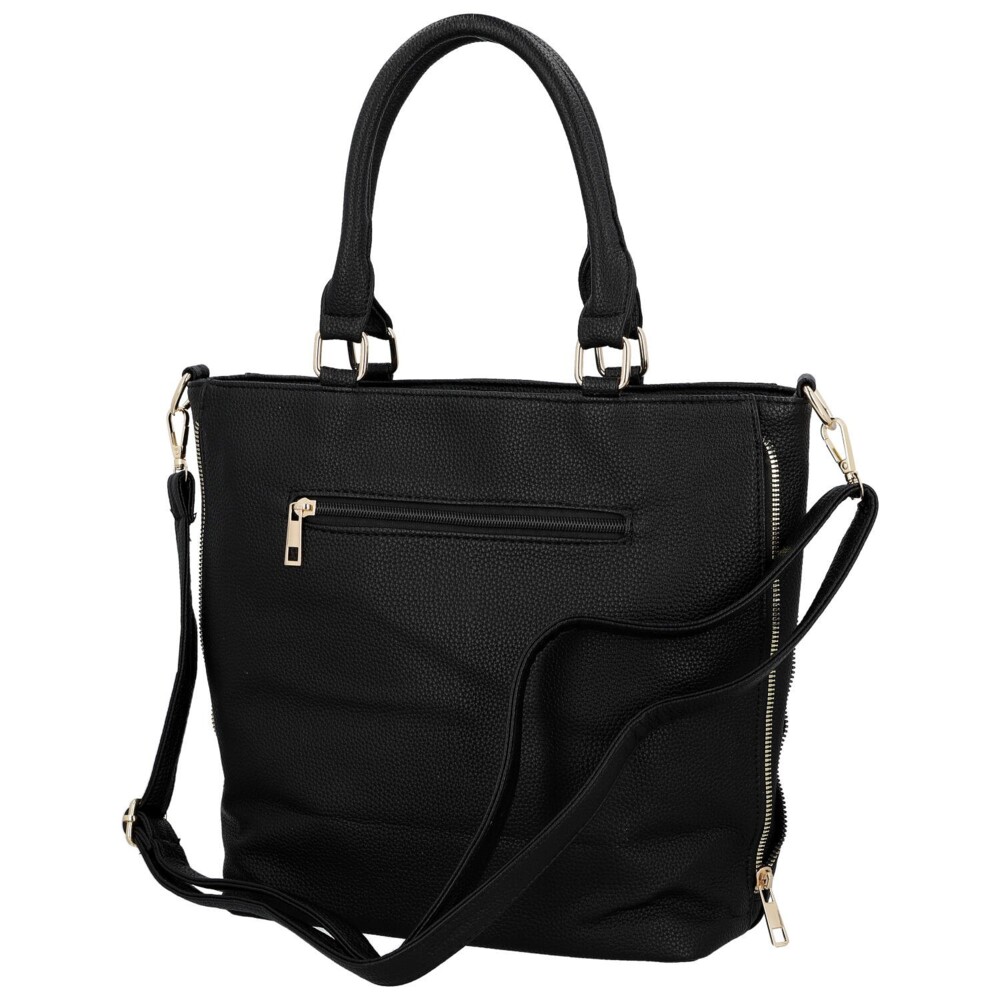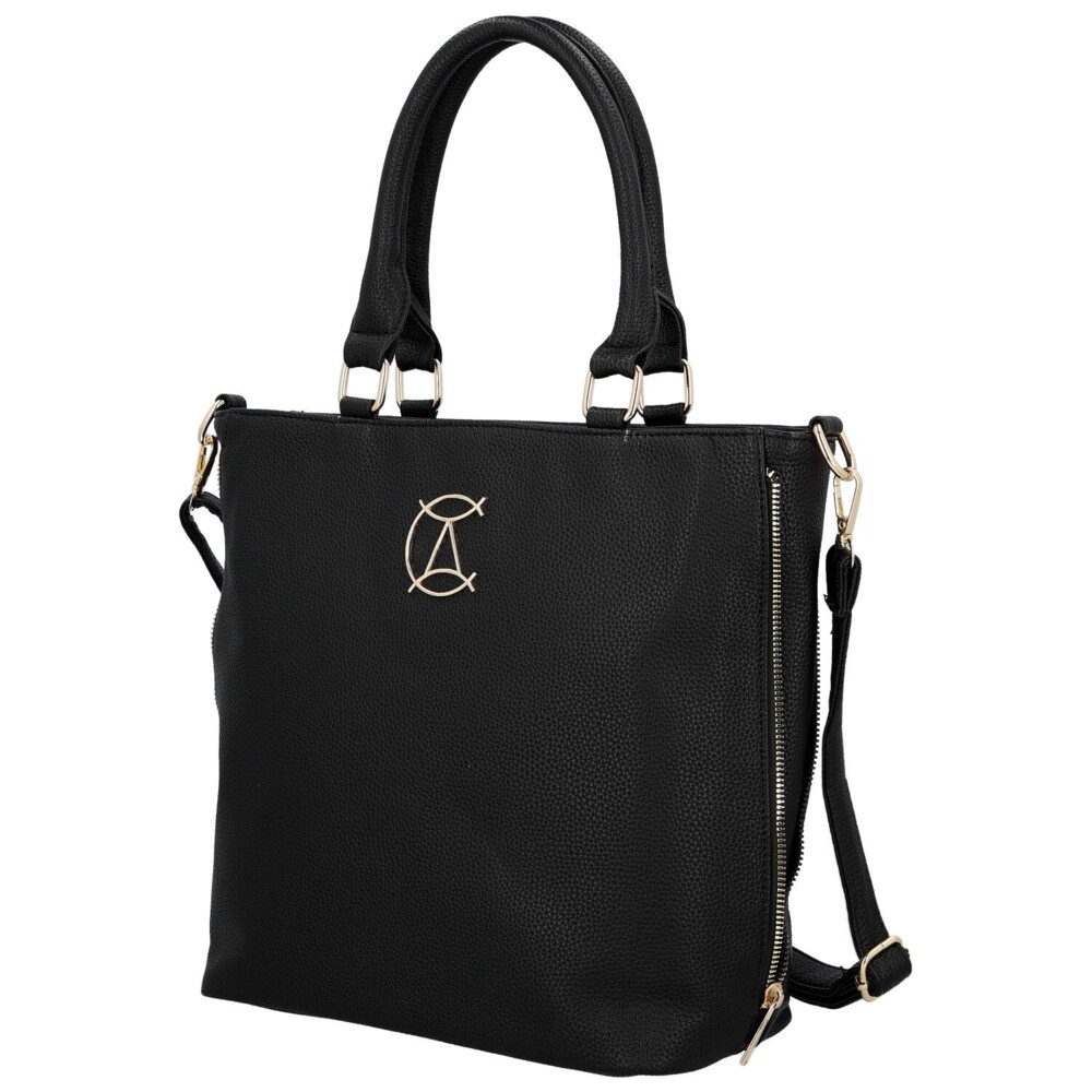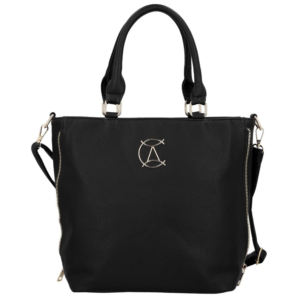 Elegantní kabelka do ruky z kvalitní koženky je ideální volbou pro ženy, které milují styl i praktičnost. Přední část zdobí decentní zlaté logo značky, které dodává modelu luxusní vzhled. Po stranách najdete funkční zipy, díky nimž lze kabelku snadno rozšířit nebo zúžit podle potřeby. Hlavní prostor se uzavírá zipem a uvnitř nabízí přehledné členění - nechybí kapsičky v podšívce ani praktická středová zipová přepážka pro bezpečné uložení drobností. Na zadní straně je další zipová kapsa. Kabelka je vybavena dvěma pevnými uchy do ruky a také dlouhým nastavitelným popruhem pro pohodlné nošení přes rameno či crossbody. Zlaté kování krásně podtrhuje její moderní a nadčasový design. Perfektní doplněk do práce, do města i na každodenní nošení. Objednejte ještě dnes a vyzkoušejte, vrátit ji můžete až za 30 dnů!