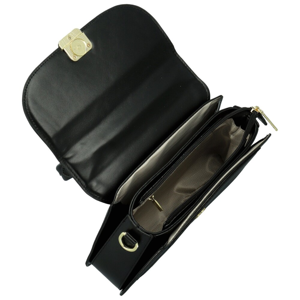 Stylová malá koženková kabelka v kufříkovém provedení. Zaoblená klopa skrývá hlavní kapsu na zip, uvnitř doplněnou menšími kapsičkami v podšívce a otevřenými kapsami vpředu i vzadu pro drobnosti. Pevné ucho umožňuje pohodlné nošení v ruce, dlouhý odnímatelný popruh zase promění kabelku na praktickou crossbody. Zlaté kování dodává elegantní a sofistikovaný detail. Krásný doplněk pro ženy, které hledají spojení praktičnosti, elegance a nezaměnitelného stylu. Objednejte ještě dnes a vyzkoušejte, vrátit ji můžete až do 30 dnů!