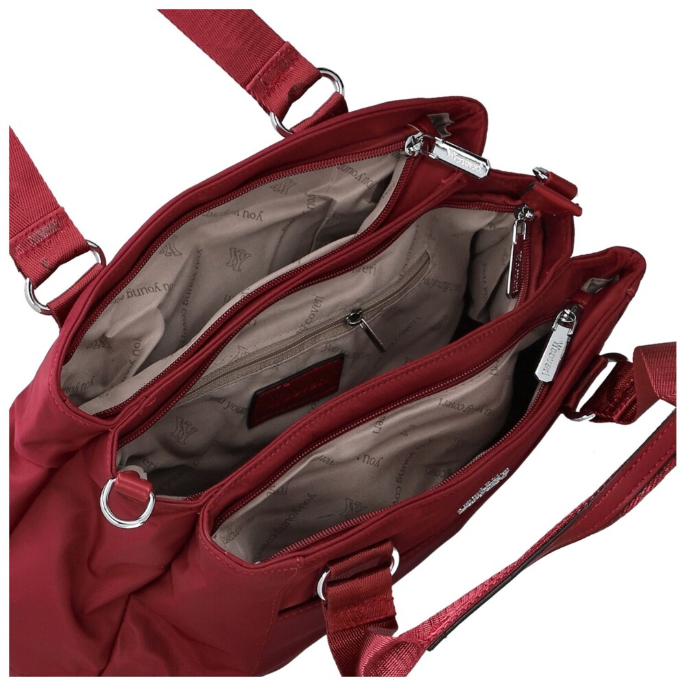 Moderní dámská kabelka z lehkého nylonu, která v sobě spojuje styl i praktičnost. Její promyšlené členění se třemi samostatnými kapsami na zip zaručí perfektní přehled a dostatek prostoru pro všechny vaše nezbytnosti. Uvnitř najdete kapsičky v podšívce pro přehledné uspořádání drobností. Na přední straně vyniká elegantní stříbrné logo značky, zatímco zadní zipová kapsa nabízí praktické místo pro věci, které potřebujete mít po ruce. Textilní ucha skvěle padnou do ruky a díky odepínacímu popruhu z téhož materiálu lze kabelku nosit i přes rameno. Stříbrné kování podtrhuje její moderní charakter. Ideální volba pro ženy, které chtějí vypadat šik i během všedních dní. Objednejte ještě dnes a vyzkoušejte, vrátit ji můžete až do 30 dnů!