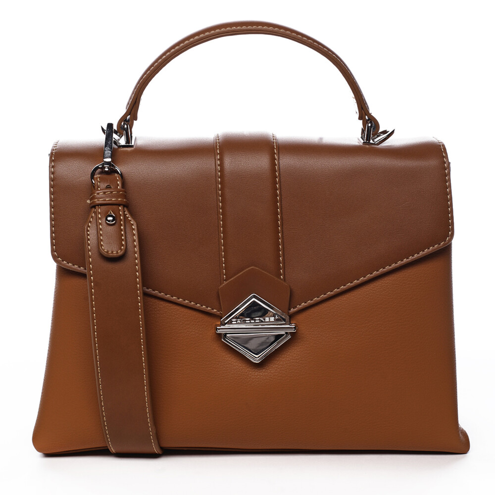 Elegantní koženková kabelka do ruky v nadčasovém kufříkovém střihu zaujme čistými liniemi a precizním zpracováním. Pevné horní ucho umožňuje pohodlné nošení v ruce, zatímco klopa se stylovým kovovým prvkem dodává kabelce sofistikovaný vzhled. Pod klopou se nachází hlavní kapsa uzavíratelná na zip, uvnitř s praktickými kapsičkami v podšívce pro přehledné uložení drobností. Na zadní straně je další zipová kapsa pro rychlý přístup k nezbytnostem. Součástí kabelky je také dlouhý odepínací popruh pro nošení přes rameno nebo crossbody. Stříbrné kování podtrhuje elegantní charakter kabelky, která je ideální jak do práce, tak pro běžné denní nošení. Objednejte ještě dnes a vyzkoušejte, vrátit ji můžete až do 30 dnů!