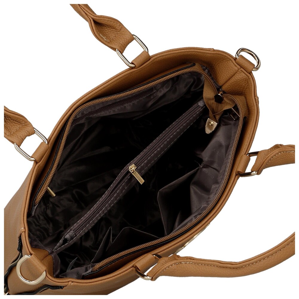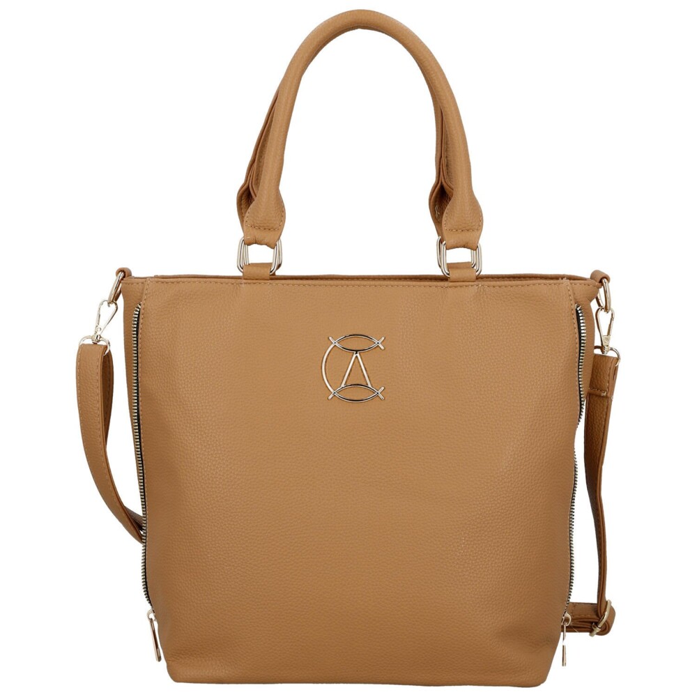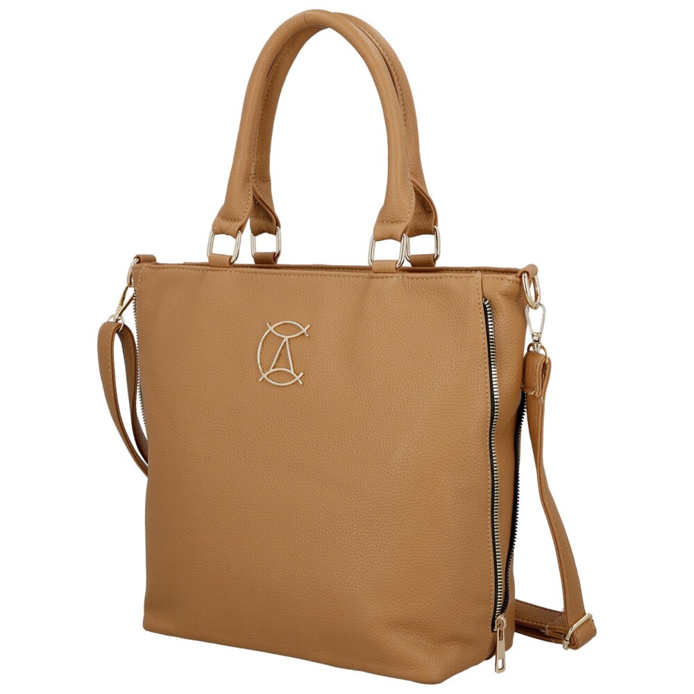 Elegantní kabelka do ruky z kvalitní koženky je ideální volbou pro ženy, které milují styl i praktičnost. Přední část zdobí decentní zlaté logo značky, které dodává modelu luxusní vzhled. Po stranách najdete funkční zipy, díky nimž lze kabelku snadno rozšířit nebo zúžit podle potřeby. Hlavní prostor se uzavírá zipem a uvnitř nabízí přehledné členění - nechybí kapsičky v podšívce ani praktická středová zipová přepážka pro bezpečné uložení drobností. Na zadní straně je další zipová kapsa. Kabelka je vybavena dvěma pevnými uchy do ruky a také dlouhým nastavitelným popruhem pro pohodlné nošení přes rameno či crossbody. Zlaté kování krásně podtrhuje její moderní a nadčasový design. Perfektní doplněk do práce, do města i na každodenní nošení. Objednejte ještě dnes a vyzkoušejte, vrátit ji můžete až za 30 dnů!