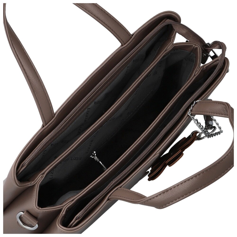 Tato dámská kabelka do ruky působí sofistikovaně a žensky zároveň. Přední část zdobí jemné logo značky a půvabný květinový přívěšek na stříbrném řetízku, který dodává kabelce jemný dotek luxusu. Uvnitř hlavní kapsy na zip se skrývá promyšleně rozdělený prostor do tří samostatných oddílů s kapsičkami v podšívce, ideální pro přehledné uspořádání drobností. Na zadní straně nechybí praktická kapsa na zip. Kabelka má pevná ucha, která skvěle padnou do ruky, a odnímatelný dlouhý popruh pro pohodlné nošení přes rameno. Stříbrné kování dotváří celkový elegantní vzhled, který se hodí jak k dennímu, tak i večernímu outfitu. Objednejte ještě dnes a vyzkoušejte, vrátit ji můžete až do 30 dnů!