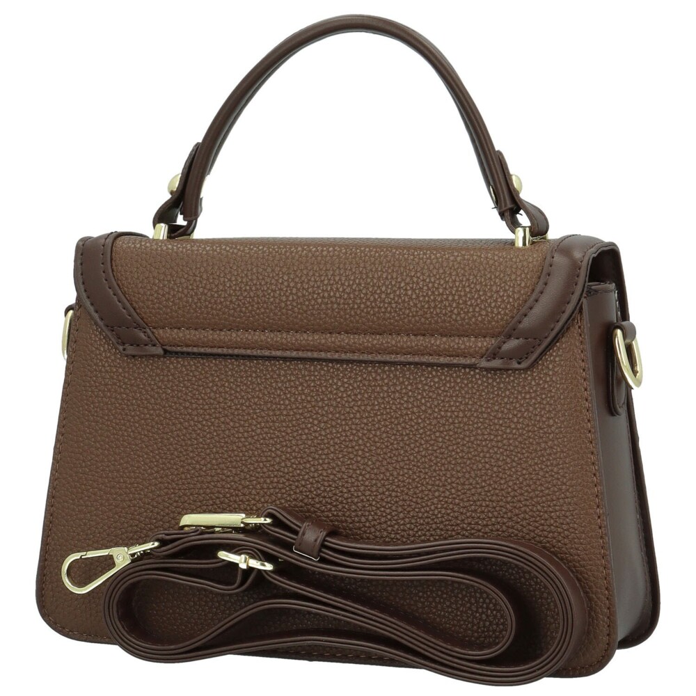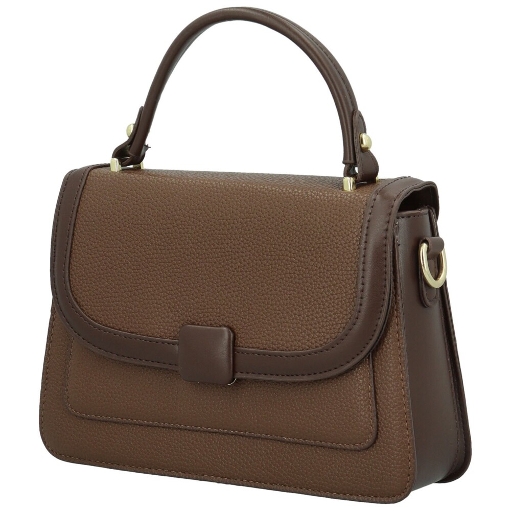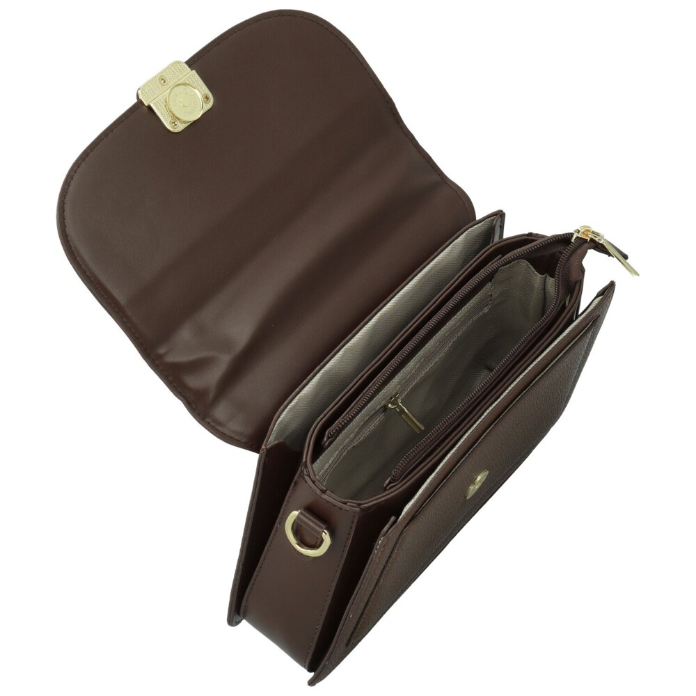 Stylová malá koženková kabelka v kufříkovém provedení. Zaoblená klopa skrývá hlavní kapsu na zip, uvnitř doplněnou menšími kapsičkami v podšívce a otevřenými kapsami vpředu i vzadu pro drobnosti. Pevné ucho umožňuje pohodlné nošení v ruce, dlouhý odnímatelný popruh zase promění kabelku na praktickou crossbody. Zlaté kování dodává elegantní a sofistikovaný detail. Krásný doplněk pro ženy, které hledají spojení praktičnosti, elegance a nezaměnitelného stylu. Objednejte ještě dnes a vyzkoušejte, vrátit ji můžete až do 30 dnů!