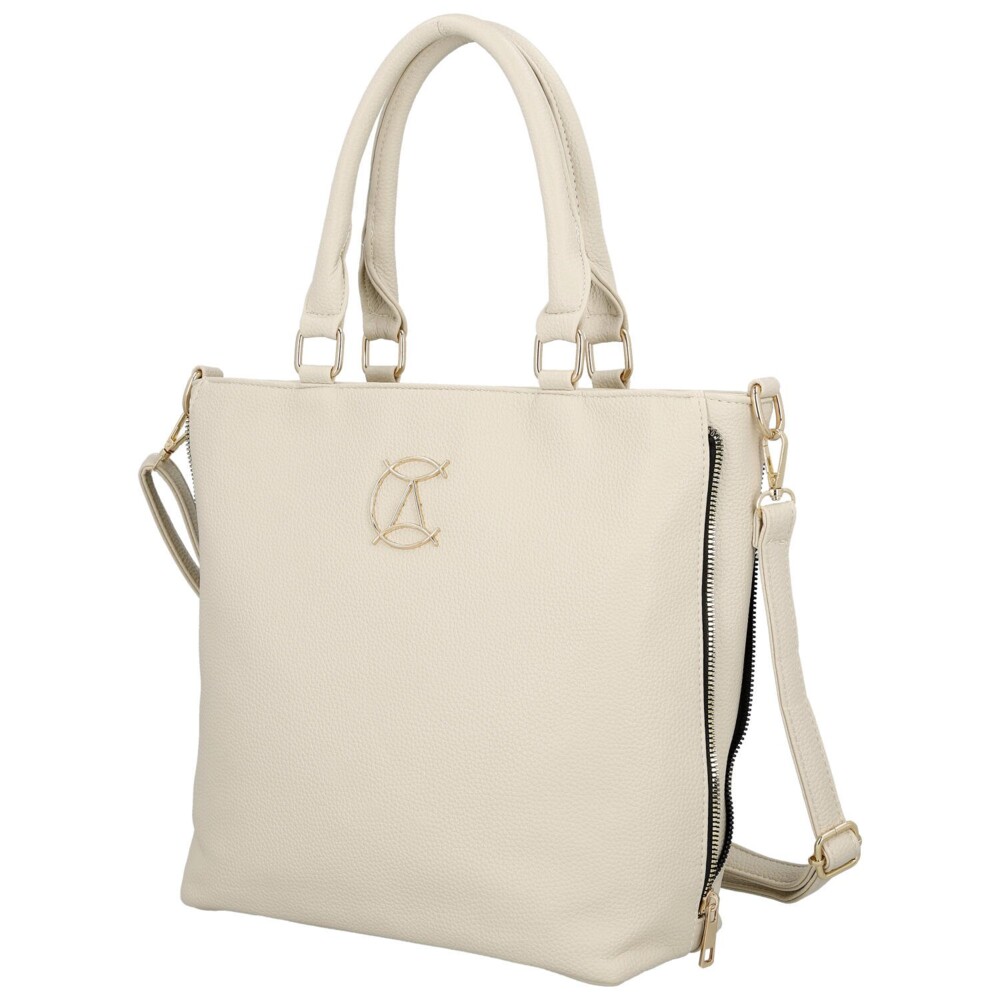 Elegantní kabelka do ruky z kvalitní koženky je ideální volbou pro ženy, které milují styl i praktičnost. Přední část zdobí decentní zlaté logo značky, které dodává modelu luxusní vzhled. Po stranách najdete funkční zipy, díky nimž lze kabelku snadno rozšířit nebo zúžit podle potřeby. Hlavní prostor se uzavírá zipem a uvnitř nabízí přehledné členění - nechybí kapsičky v podšívce ani praktická středová zipová přepážka pro bezpečné uložení drobností. Na zadní straně je další zipová kapsa. Kabelka je vybavena dvěma pevnými uchy do ruky a také dlouhým nastavitelným popruhem pro pohodlné nošení přes rameno či crossbody. Zlaté kování krásně podtrhuje její moderní a nadčasový design. Perfektní doplněk do práce, do města i na každodenní nošení. Objednejte ještě dnes a vyzkoušejte, vrátit ji můžete až za 30 dnů!