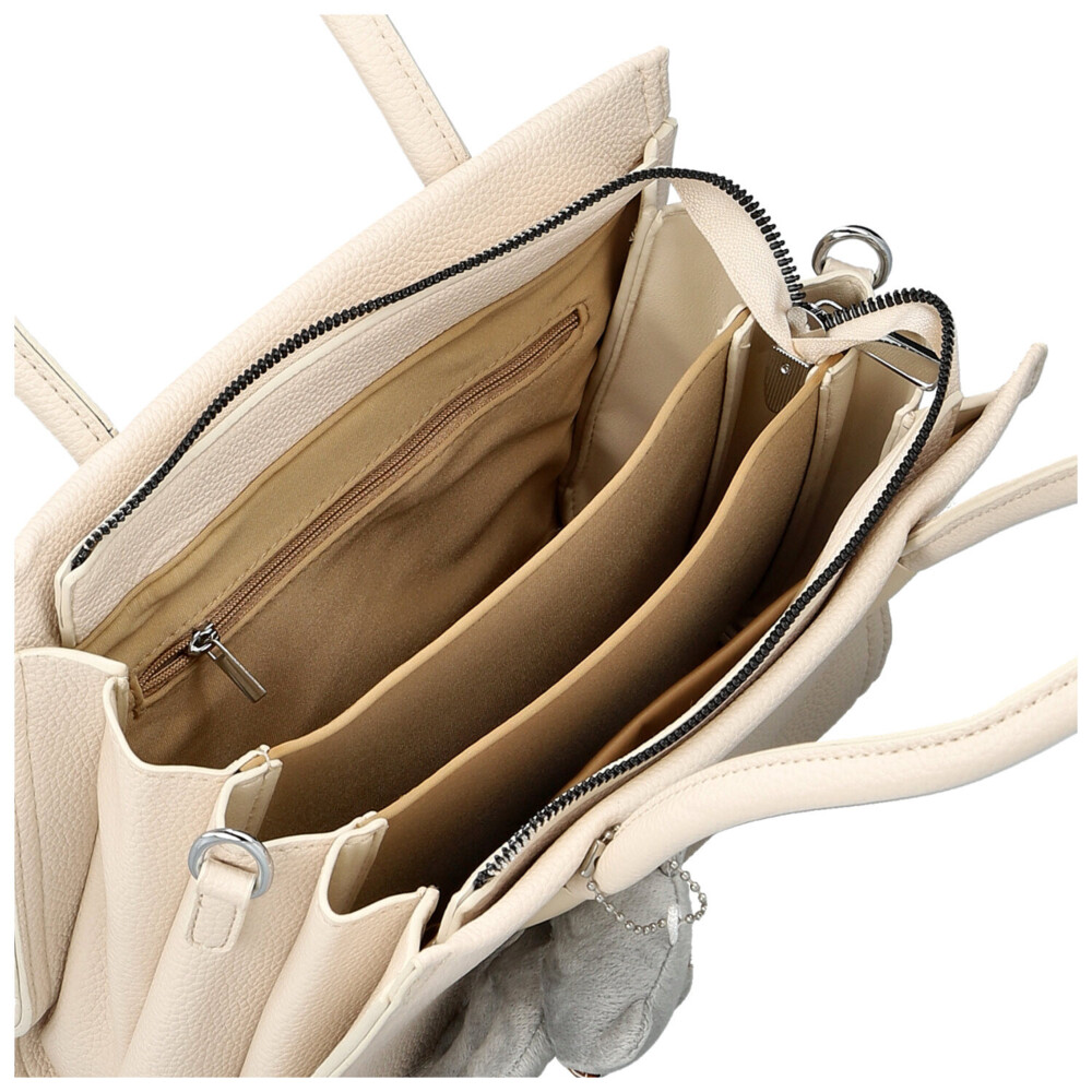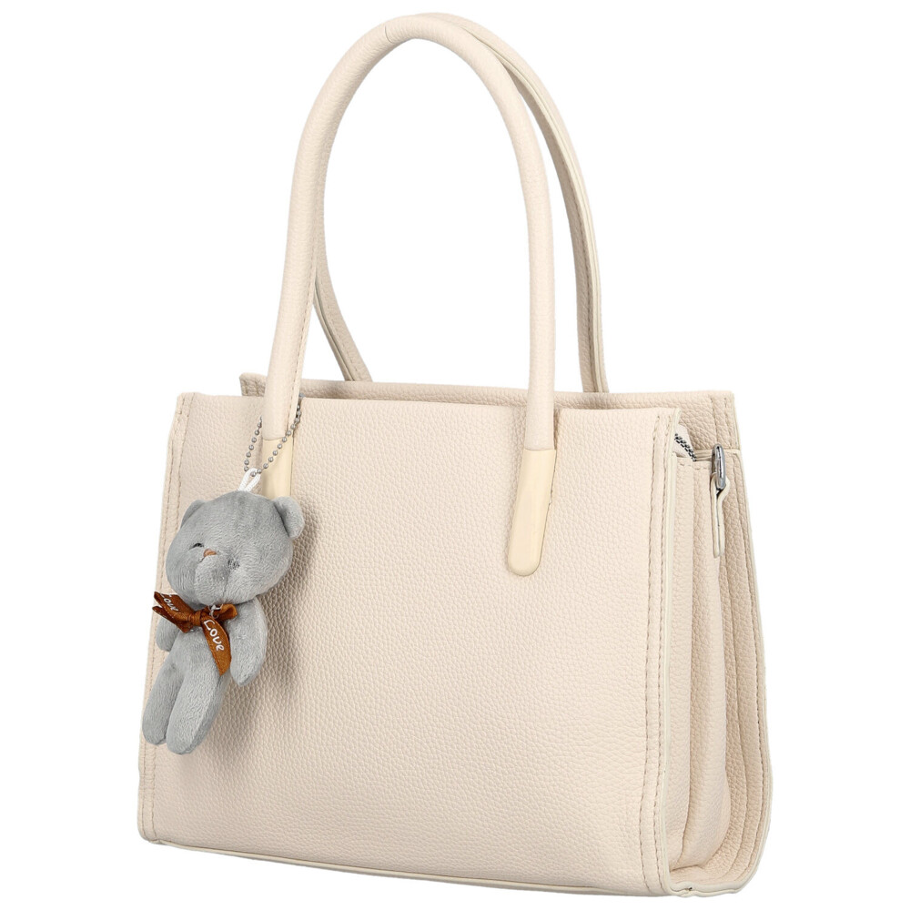 Elegantní koženková kabelka do ruky, která v sobě spojuje čistý design a jemně hravý akcent. Stylový plyšový medvídek na uchu dodává kabelce originální charakter a dělá z ní nepřehlédnutelný doplněk. Zipové uzavírání chrání obsah kabelky a po otevření vás potěší chytře řešený vnitřní prostor rozdělený do tří samostatných částí pro maximální přehlednost. Uvnitř nechybí ani zipová kapsička v podšívce a další praktická kapsa na zip na zadní straně. Stříbrné kování podtrhuje moderní vzhled kabelky. Díky odnímatelnému a nastavitelnému popruhu ji můžete nosit variabilně - elegantně v ruce nebo pohodlně přes rameno. Ideální volba pro ženy, které milují styl s osobitým detailem. Objednejte ještě dnes a vyzkoušejte, vrátit ji můžete do 30 dnů!