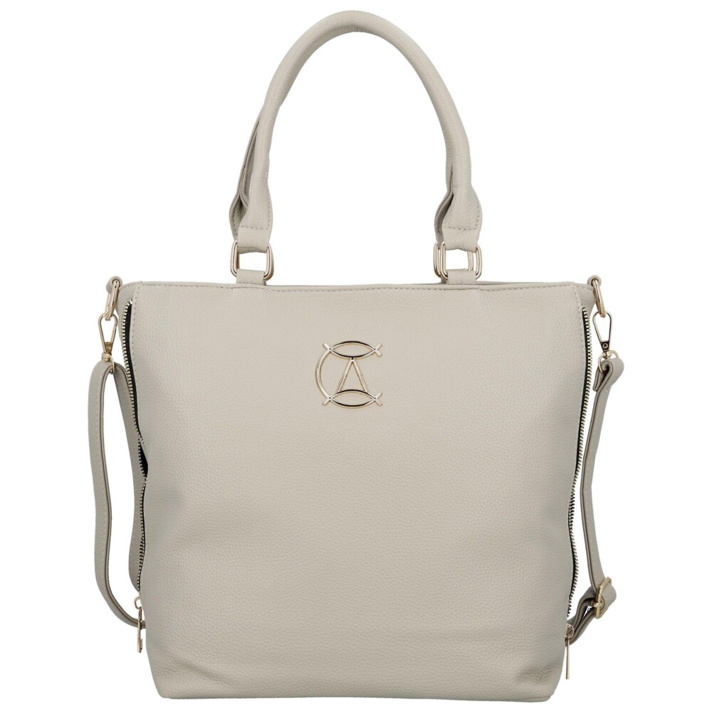 Elegantní kabelka do ruky z kvalitní koženky je ideální volbou pro ženy, které milují styl i praktičnost. Přední část zdobí decentní zlaté logo značky, které dodává modelu luxusní vzhled. Po stranách najdete funkční zipy, díky nimž lze kabelku snadno rozšířit nebo zúžit podle potřeby. Hlavní prostor se uzavírá zipem a uvnitř nabízí přehledné členění - nechybí kapsičky v podšívce ani praktická středová zipová přepážka pro bezpečné uložení drobností. Na zadní straně je další zipová kapsa. Kabelka je vybavena dvěma pevnými uchy do ruky a také dlouhým nastavitelným popruhem pro pohodlné nošení přes rameno či crossbody. Zlaté kování krásně podtrhuje její moderní a nadčasový design. Perfektní doplněk do práce, do města i na každodenní nošení. Objednejte ještě dnes a vyzkoušejte, vrátit ji můžete až za 30 dnů!