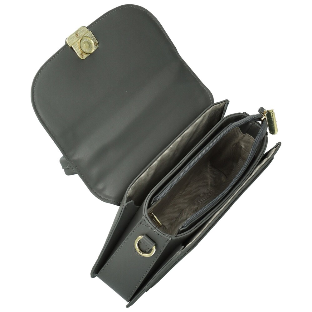 Stylová malá koženková kabelka v kufříkovém provedení. Zaoblená klopa skrývá hlavní kapsu na zip, uvnitř doplněnou menšími kapsičkami v podšívce a otevřenými kapsami vpředu i vzadu pro drobnosti. Pevné ucho umožňuje pohodlné nošení v ruce, dlouhý odnímatelný popruh zase promění kabelku na praktickou crossbody. Zlaté kování dodává elegantní a sofistikovaný detail. Krásný doplněk pro ženy, které hledají spojení praktičnosti, elegance a nezaměnitelného stylu. Objednejte ještě dnes a vyzkoušejte, vrátit ji můžete až do 30 dnů!