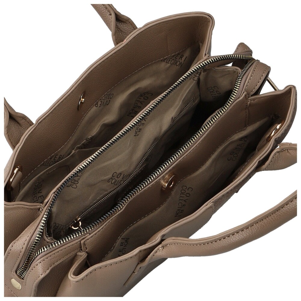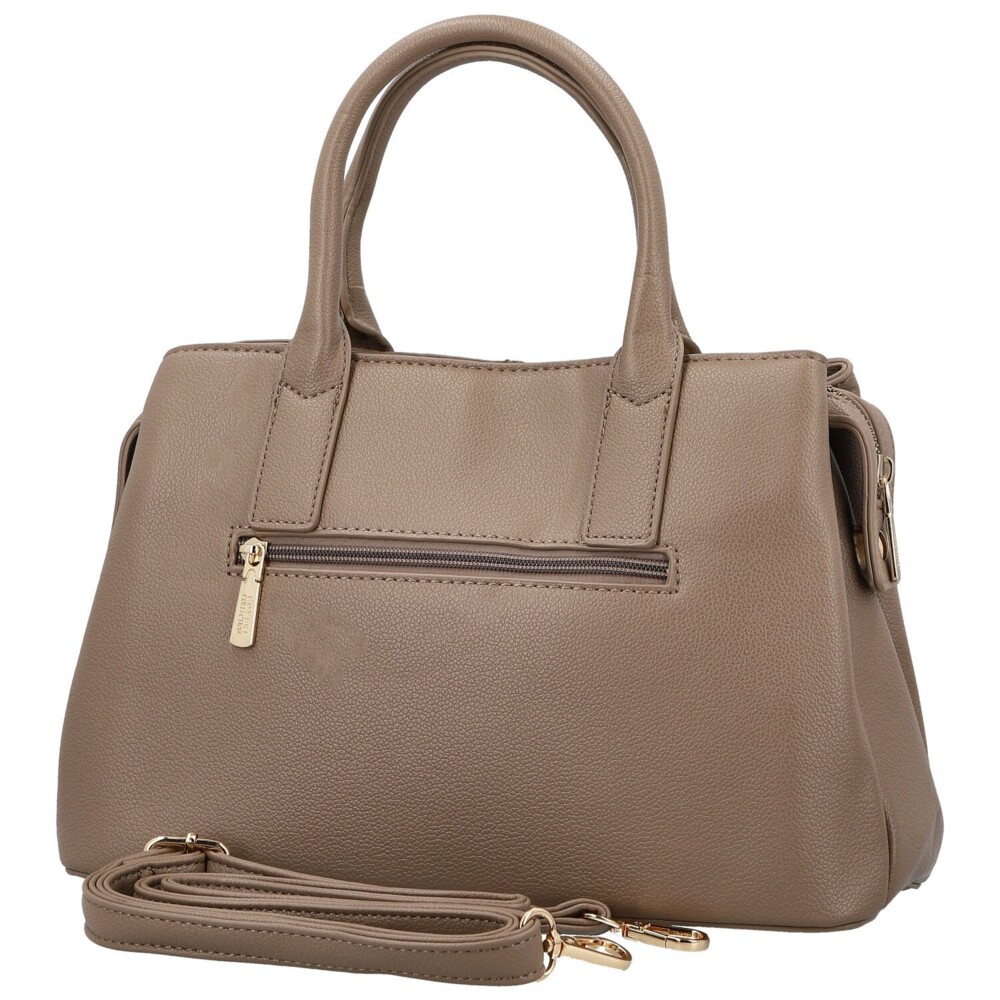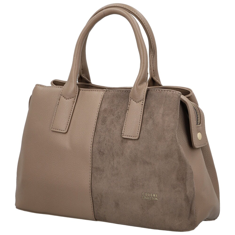 Stylová a originální - tato dámská kabelka do ruky kombinuje hladkou koženku s jemným semišem, rozdělenými elegantním svislým prošitím, které dodává kabelce moderní grafický nádech. Na semišové části se jemně vyjímá malé logo značky. Pevná koženková ucha pohodlně padnou do ruky a přídavný koženkový popruh umožňuje nosit kabelku i přes rameno. Hlavní středová kapsa na zip je doplněna dvěma postranními kapsami na druk, uvnitř najdete praktické kapsičky v podšívce a zadní strana ukrývá zipovou kapsu. Zlaté kování podtrhuje luxusní charakter kabelky, která je ideální volbou pro každou moderní ženu hledající styl a praktičnost v jednom. Objednejte ještě dnes a vyzkoušejte, vrátit ji můžete až do 30 dnů!