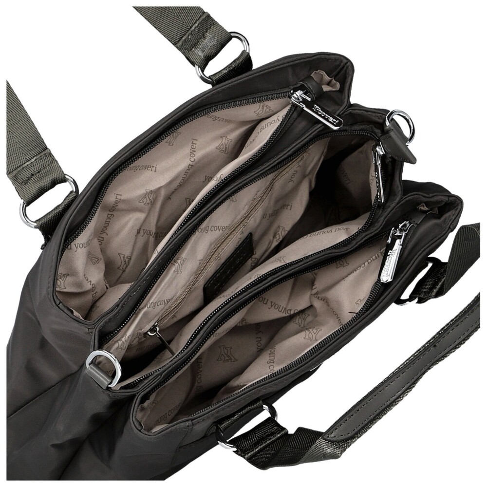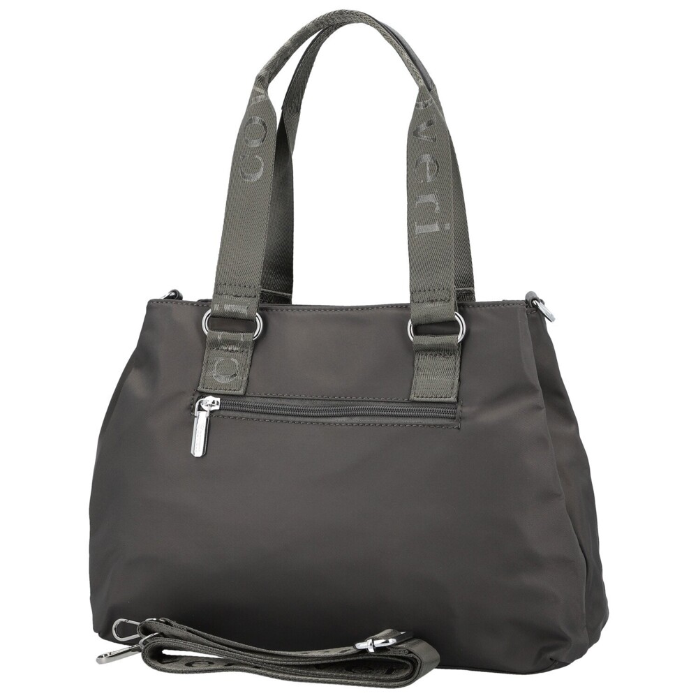 Moderní dámská kabelka z lehkého nylonu, která v sobě spojuje styl i praktičnost. Její promyšlené členění se třemi samostatnými kapsami na zip zaručí perfektní přehled a dostatek prostoru pro všechny vaše nezbytnosti. Uvnitř najdete kapsičky v podšívce pro přehledné uspořádání drobností. Na přední straně vyniká elegantní stříbrné logo značky, zatímco zadní zipová kapsa nabízí praktické místo pro věci, které potřebujete mít po ruce. Textilní ucha skvěle padnou do ruky a díky odepínacímu popruhu z téhož materiálu lze kabelku nosit i přes rameno. Stříbrné kování podtrhuje její moderní charakter. Ideální volba pro ženy, které chtějí vypadat šik i během všedních dní. Objednejte ještě dnes a vyzkoušejte, vrátit ji můžete až do 30 dnů!