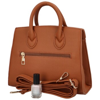 Menší až střední kabelka do ruky, která je ideálním doplňkem pro každodenní pochůzky, stejně jako na večerní akci. Trendy barva a elegantní střih jsou to pravé, když chcete zanechat ten správný dojem. Další povedený model od značky MaxFly. Objednejte ještě dnes a vyzkoušejte, vrátit ji můžete do 30 dnů! Ozdobná přezka se zámečkem je čistě designový prvek. Hlavní úložný prostor zajistíte zipem, uvnitř najdete zabudovanou kapsu a otevřenou přihrádku pro drobnosti. Poslední z kapes je bezpečně umístěna na zadní straně kabelky. Pro nošení na rameni je vám k dispozici připínací koženkový popruh, sladěný s celkem.