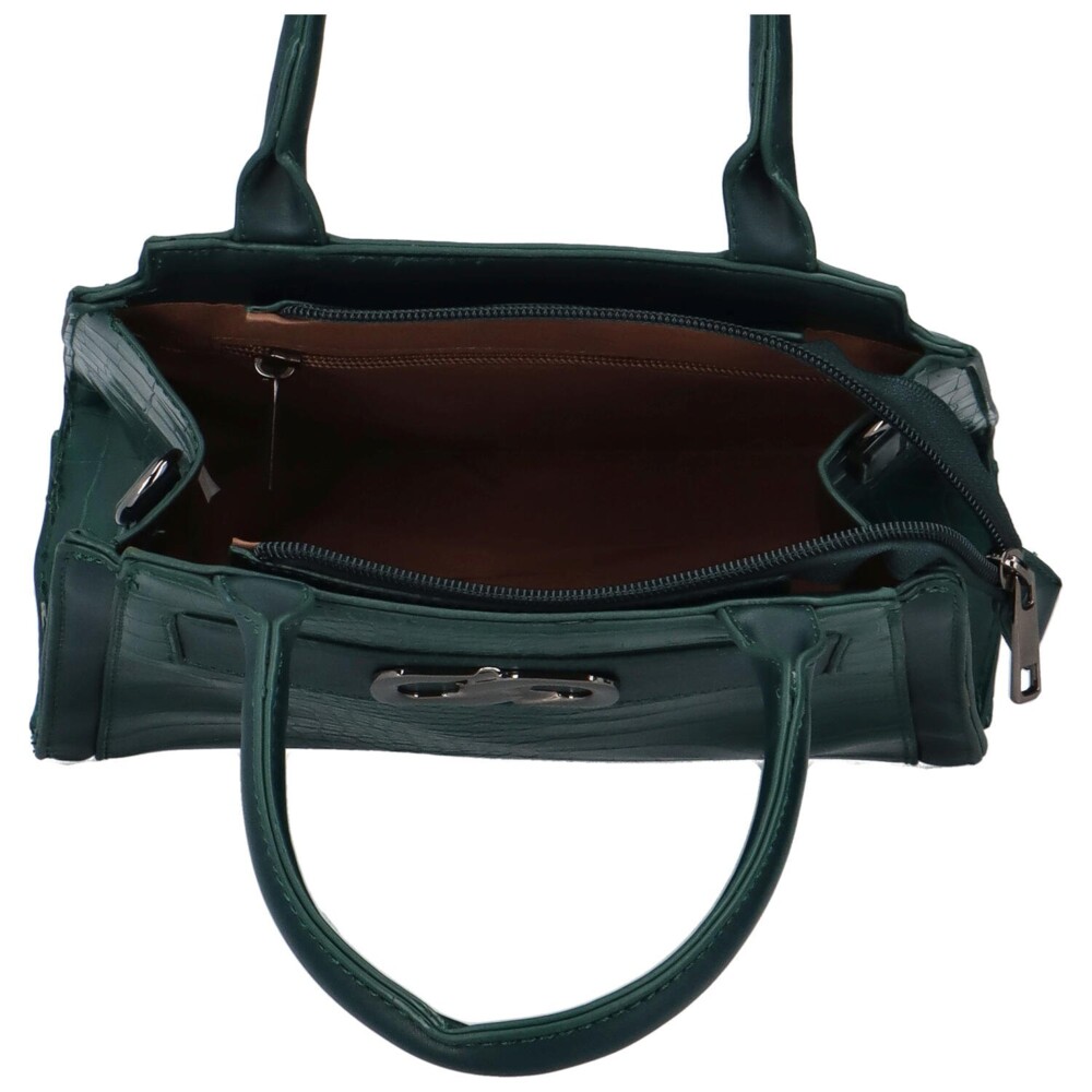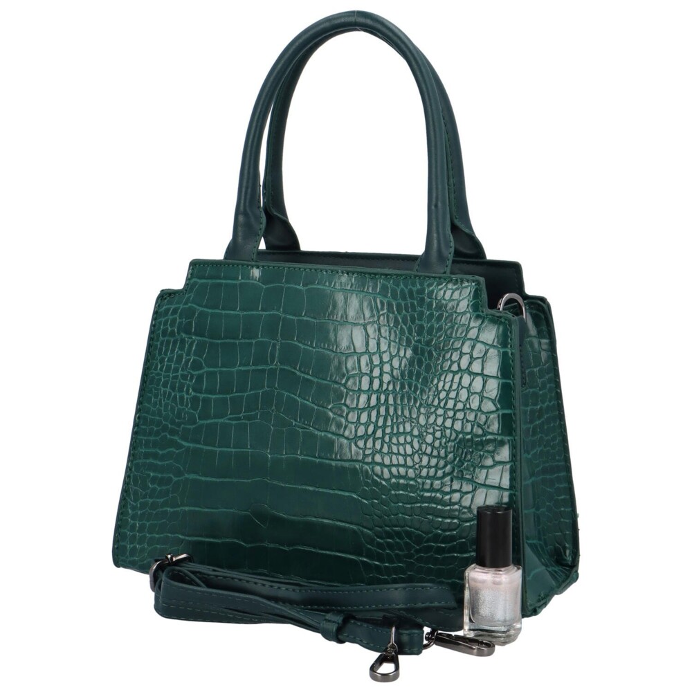 Tuto krásnou menší kabelku zdobí krokodýlí vzor a tak vypadá luxusně a žádaně. Kabelka má hlavní kapsu na zip a uvnitř najdete malé boční kapsičky. Kabelce sluší, když ji nosíte v ruce, ale má i odnímatelný, dlouhý popruh pro nošení na rameni. Přední stranu pak zdobí okrasná spona ve stříbrné barvě. I ostatní kování je v módní stříbrné barvě. Sympatická kabelka, která podtrhne váš jedinečný styl. Tak objednejte ještě dnes a vyzkoušejte, vrátit jej můžete do 30ti dnů.