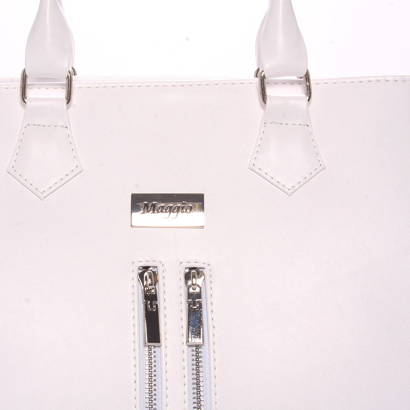 Nabízíme vám luxusní kabelku Maggio z kolekce 2016 v bílé barvě. Kabelka má na přední lakované straně dva výrazné zipy, pod nimi jsou kapsy. Uvnitř vám kabelka nabídne menší kapsy bez zipu a se zipem, nedělený prostor s černou podšívkou. Kabelka je pevná, střední velikosti a můžete ji nosit v ruce, na předloktí nebo i přes rameno. Součástí je nastavitelný popruh. Novinka léto 2016!