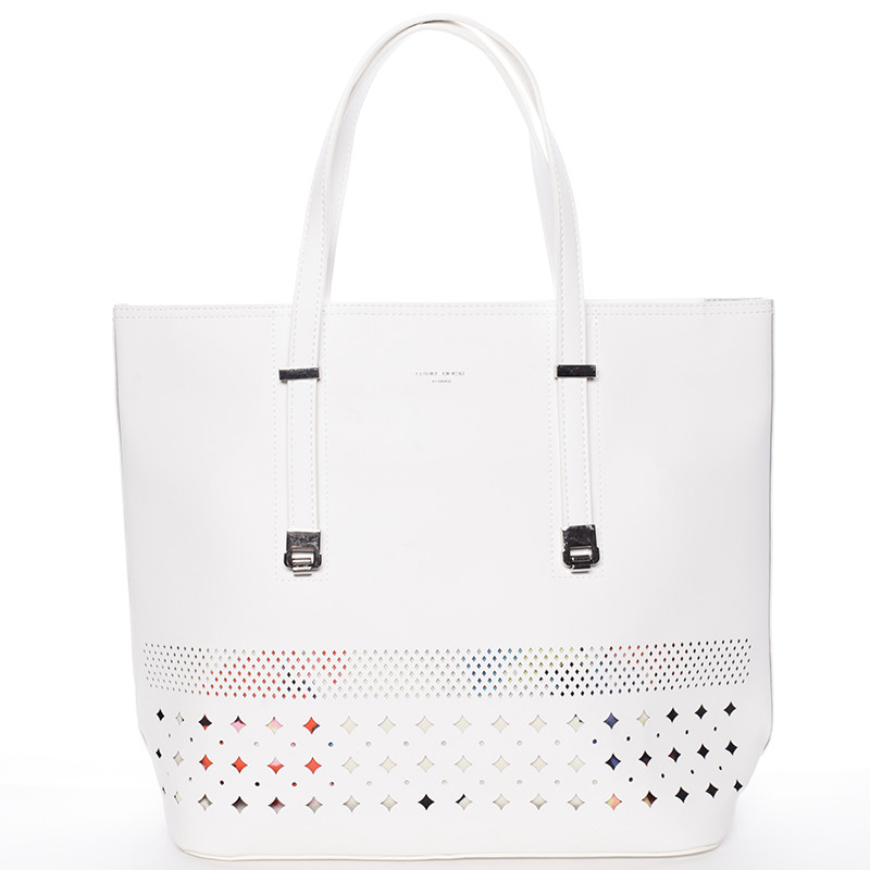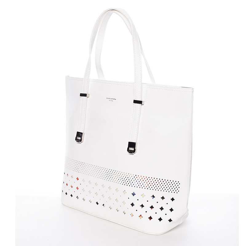 Elegantní perforovaná bílá kabelka s organizérem - David Jones Cambria