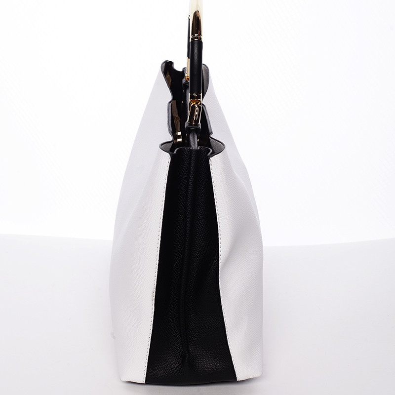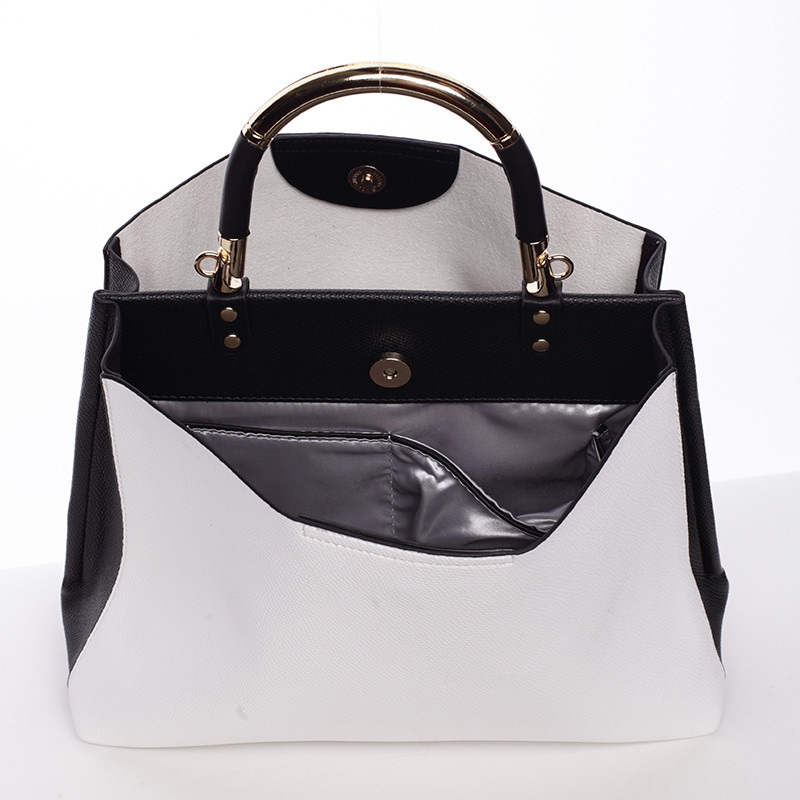 Dnešní doba přeje sebevědomým a úspěšným ženám. Přesně pro takové ženy je určena bílá exkluzivní kabelka z dílny Tommasini. Svým jednoduchým originálním designem a zpracováním podtrhne osobnost každé ženy při všech společenských událostech. Nesmí proto chybět ani Vám. Hlavní kapsa je rozdělena pevnou přepážkou na dvě části, které se zavírají na magnetický cvoček. Kabelka je měkká, s pevným dnem, chráněným cvočky proti poškrábání. Kabelka má odnímatelný a nastavitelný popruh, takže ji lze nosit i přes rameno. Má pevné ucho, ke kterému lze připojit popruh. Materiál, ze kterého je kabelka zhotovena je vodě odolný. Novinka. Objednejte ještě dnes a vyzkoušejte, vrátit ji můžete až za 30 dnů!