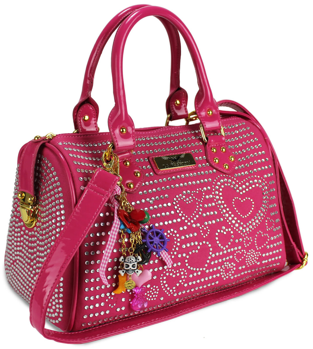 Kabelka L&S fashion v růžovém provedení posetá kamínky a na zip. Uvnitř - kapsa na zip a dvě kapsy bez zipu. Nastavitelný popruh.
