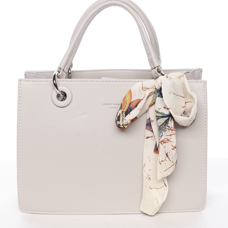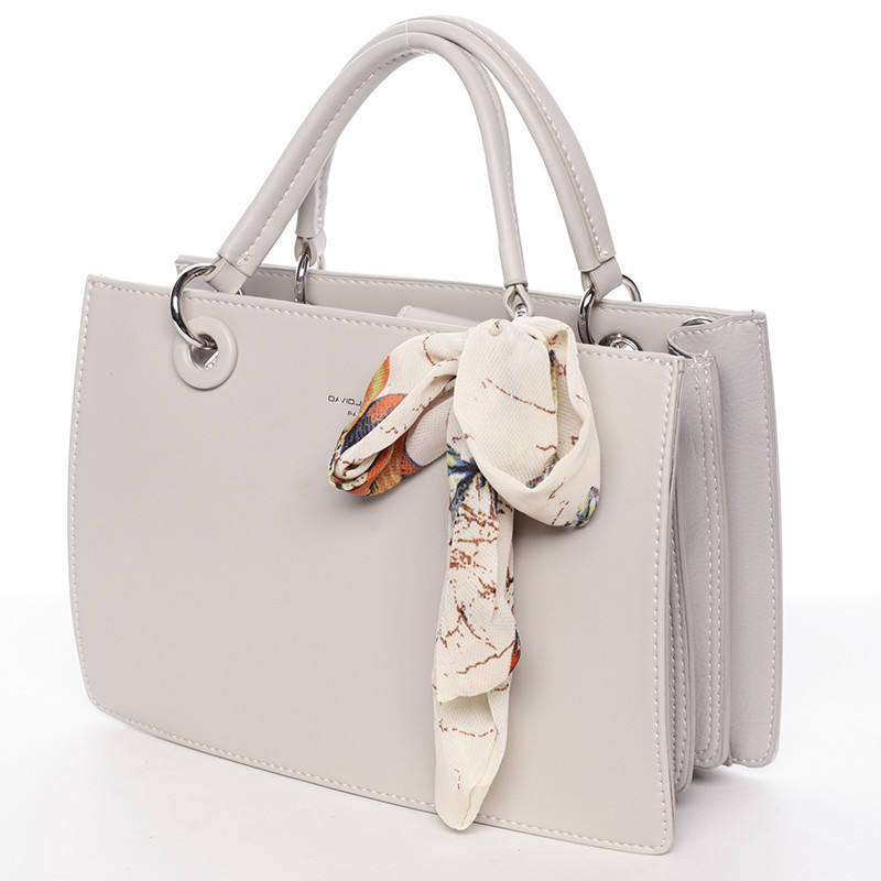Luxusní světle šedá kabelka do ruky s šátkem - David Jones Ledell