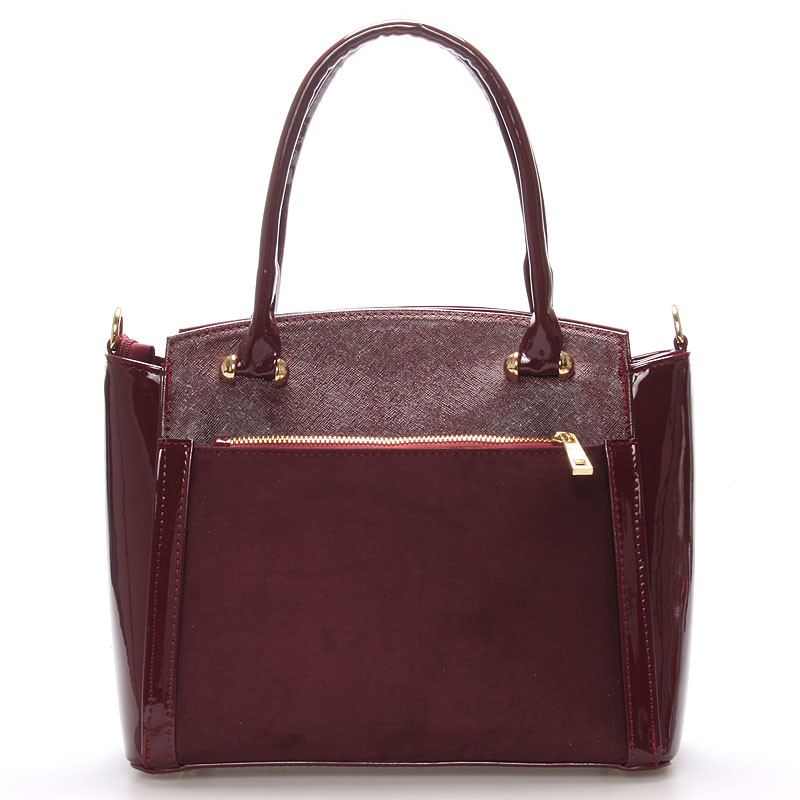 Luxusní novinka Delami ! Vínová lesklá dámská kabelka v úpravě saffiano s výraznou semišovou kapsou na přední straně. Díky nastavitelnému popruhu lze kabelku nosit přes rameno, ale i na předloktí nebo v ruce. Dno má čtyři ochranné cvočky proti ušpinění a poškrábání. Uvnitř je prakticky rozdělený prostor s postranními kapsičkami. Lehounká ale pevná kabelka z příjemného materiálu je ozdobou našeho eshopu. Chcete, aby zdobila i vás? Objednejte ještě dnes a vyzkoušejte, vrátit ji můžete až za 30 dnů!