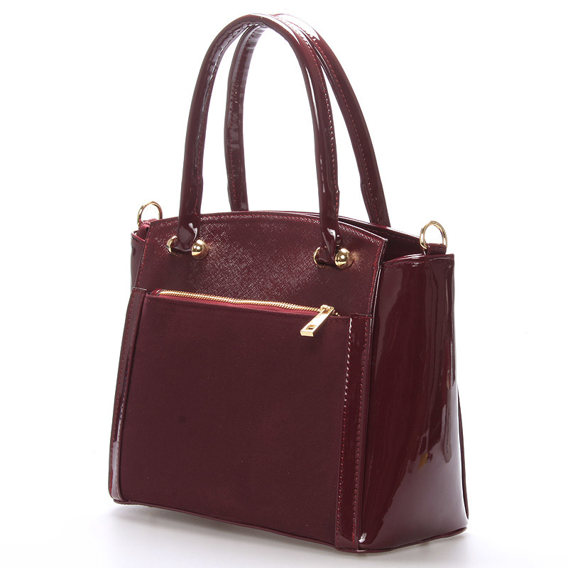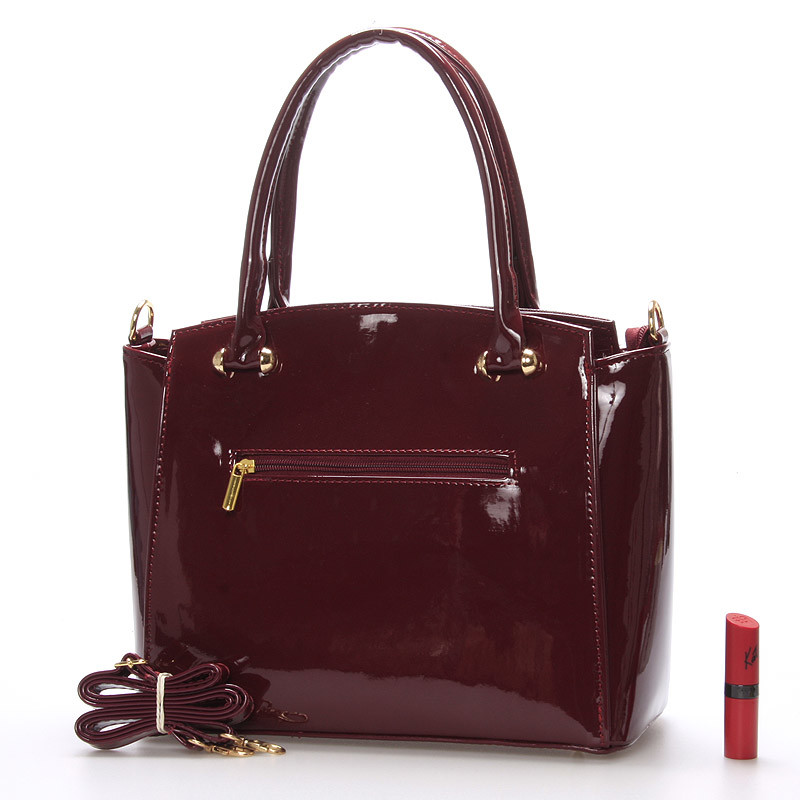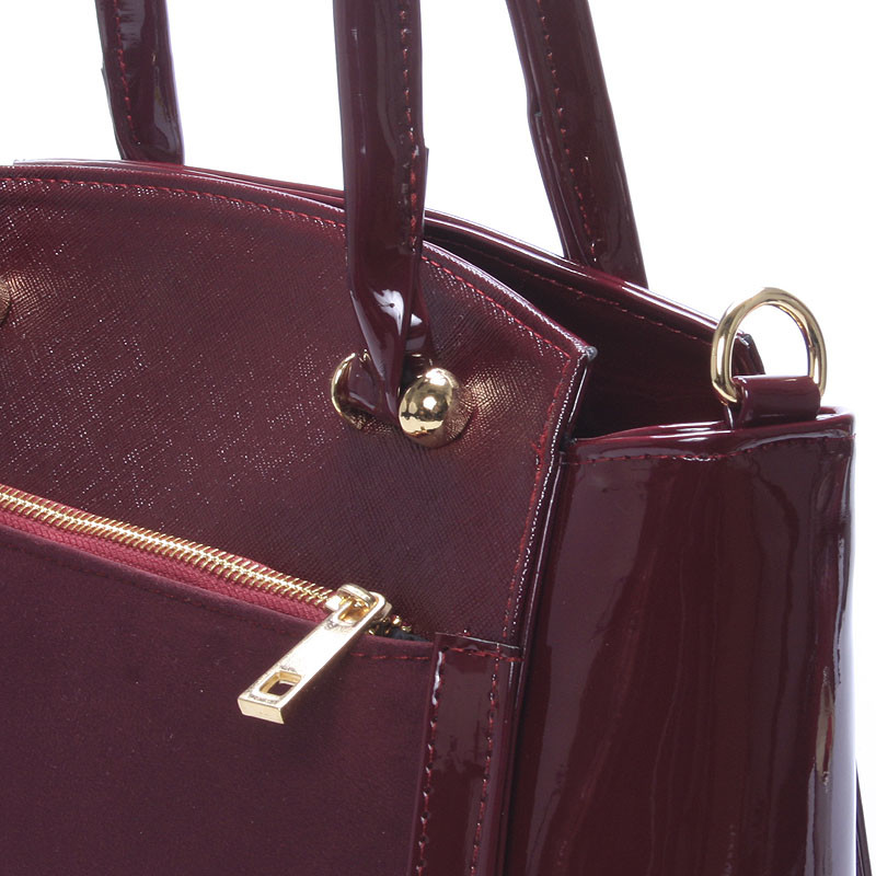 Luxusní vínová lakovaná kabelka se zlatým kováním - Delami Margo