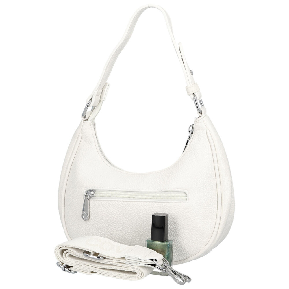 Kabelka typu gondolka značky Coveri – dokonalá kombinace eleganci a retro stylu který se teď znovu vrací. Tato malá bílá kabelka s jedním uchem a připínatelným textilním popruhem v barvě kabelky perfektně podtrhne Váš outfit né jen když vyrazíte do města, ale i do společnosti - definitivně kabelka kterou můžete použít i jako společenskou. Přineste do svého života nádech elegance a praktičnosti s touto unikátní kabelkou Venetia od značky Coveri.