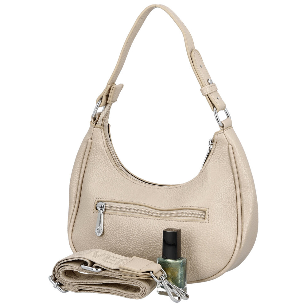 Kabelka typu gondolka značky Coveri – dokonalá kombinace eleganci a retro stylu který se teď znovu vrací. Tato malá taupe kabelka s jedním uchem a připínatelným textilním popruhem v barvě kabelky perfektně podtrhne Váš outfit né jen když vyrazíte do města, ale i do společnosti - definitivně kabelka kterou můžete použít i jako společenskou. Přineste do svého života nádech elegance a praktičnosti s touto unikátní kabelkou Venetia od značky Coveri.