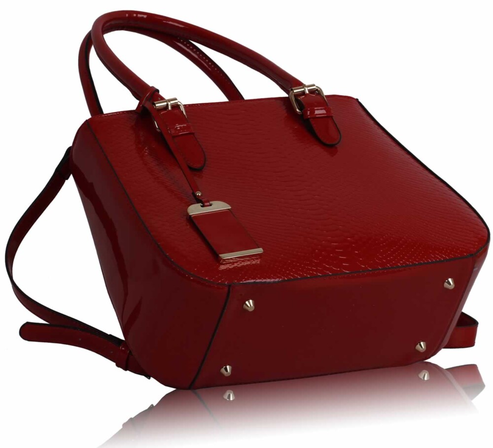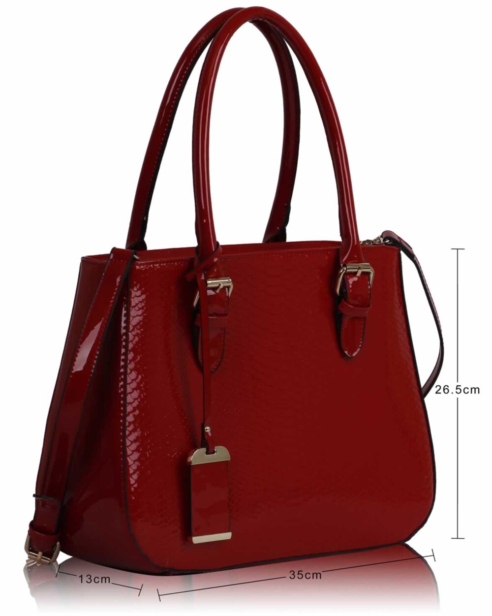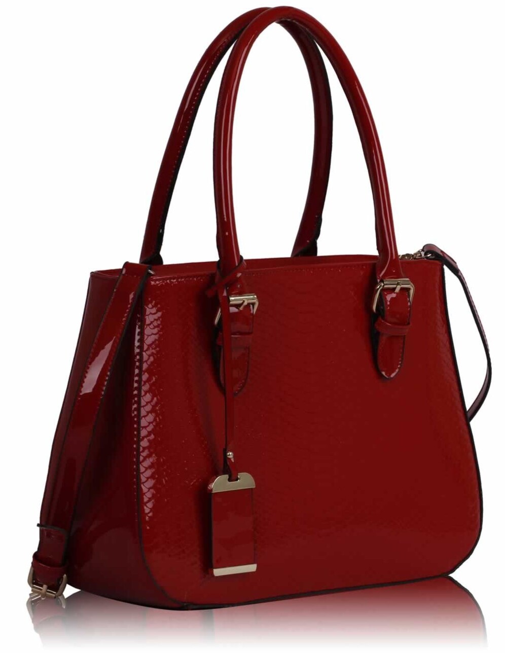 Červená elegantní lakovaná kabelka L&S fashion na zip. Uvnitř - kapsa na zip a dvě kapsy bez zipu. Kabelku lze nosit v ruce nebo přes rameno. Součástí je odnímatelný popruh. Materiál technická kůže v úpravě hadí kůže.