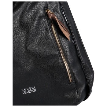 Módní syntetické kabelky od značky Coveri World, které upravíte během chvilky na batoh. Levný model do města v černé barvě má lehce vrásčitý design, přesto je hladká. Hlavní kapsa se otevírá zipem. Přední strana Vás zaujme dvěma svislými kapsami. Detaily kabelky jsou hnědé.