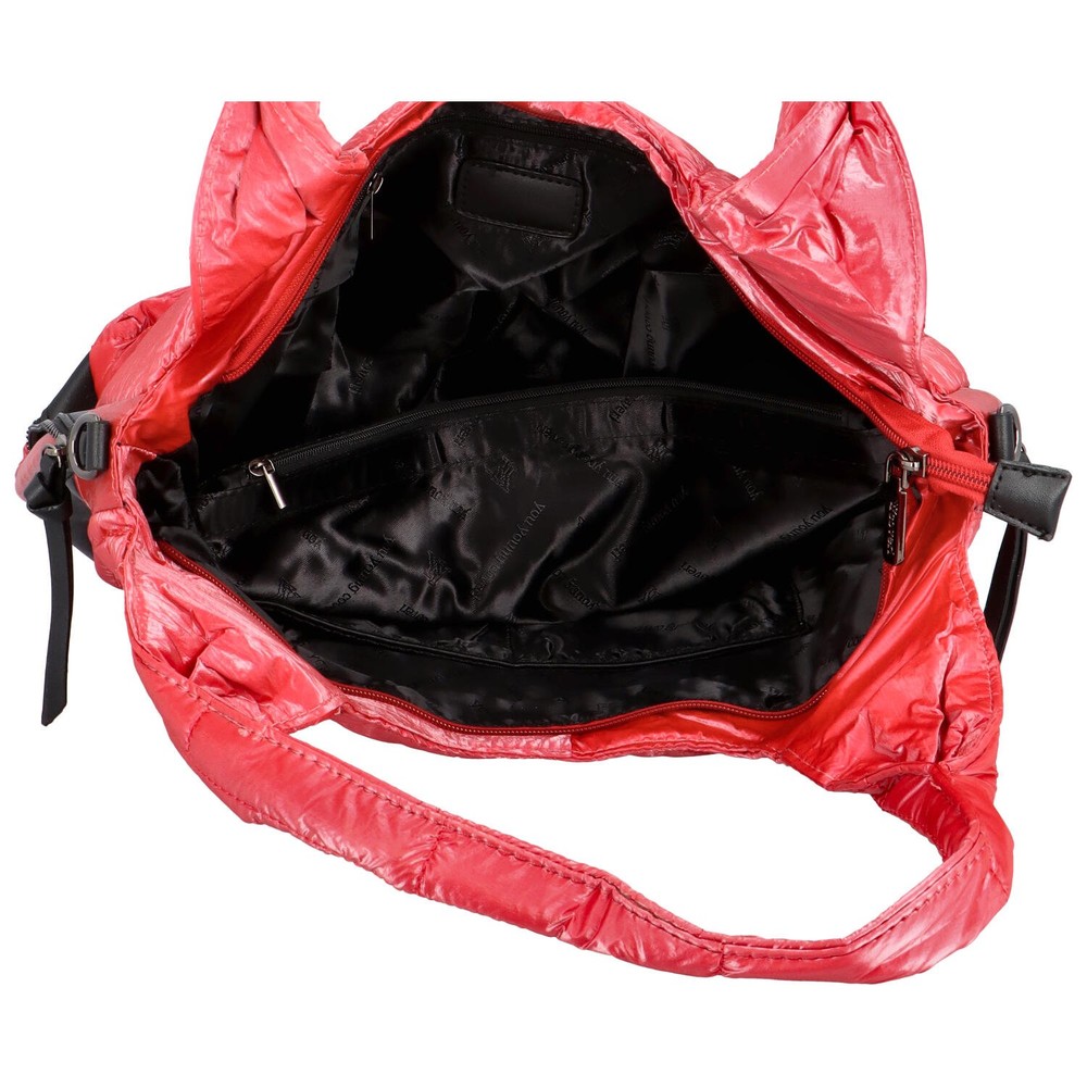 Unikátní syntetické kabelky od značky Coveri World. Červená kabelka s odleskem, kterou můžete nosit v ruce i přes rameno, či s popruhem. Originální větší kabelka do města. Módní, hladký, lesklý kousek, který lze na bocích, díky zipům, zúžit či rozšířit. Hlavní kapsa se otevírá zipem, vnitřní prostor se rozděluje látkovou přepážkou ve formě kapsy na zip. Chybět Vám nebudou ani kapsičky na drobnosti.