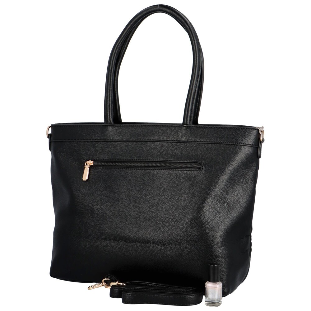 Dámská kabelka ze syntetické kůže v praktickém větším a pevném provedení pro pohodlné užívání během celého dne. Nadčasový model s prošíváním na přední straně kabelky. Hlavní úložný prostor je uzavíratelný zipem a uvnitř je rozdělen na dvě části velkou středovou přihrádkou na zip z podšívky. Další menší kapsičky jsou uvnitř kabelky po stranách. Menší kapsička je v zadní části kabelky na vaše drobnosti a dá se uzavřít zipem. Kabelku můžete díky pevným velkým uším nosit na rameni či v ruce, nebo připnout nastavitelný koženkový popruh a nosit jí do kříže. Tak objednejte ještě dnes a vyzkoušejte, vrátit ji můžete do 30ti dnů.