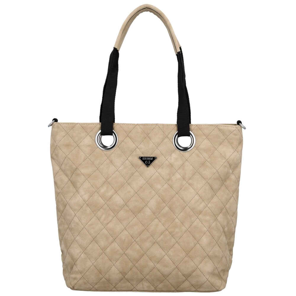Stylová a prostorná, tato velká koženková kabelka na rameno zaujme na první pohled svým designovým prošitím do tvarů kosočtverců. Přední stranu zdobí logo značky a stříbrné kovové kroužky, kterými jsou uchycena kombinovaná textilní a koženková ucha, dodávající kabelce moderní charakter. Hlavní kapsa na zip nabízí dostatek prostoru, uvnitř najdete menší kapsičky v podšívce a středovou zipovou kapsu pro lepší organizaci. Zadní zipová kapsa poskytuje praktický úložný prostor. Textilní popruh na připnutí a stříbrné kování dokončují elegantní a zároveň funkční design, který se hodí ke každodenním i pracovním outfitům. Objednejte ještě dnes a vyzkoušejte, vrátit ji můžete až do 30 dnů!