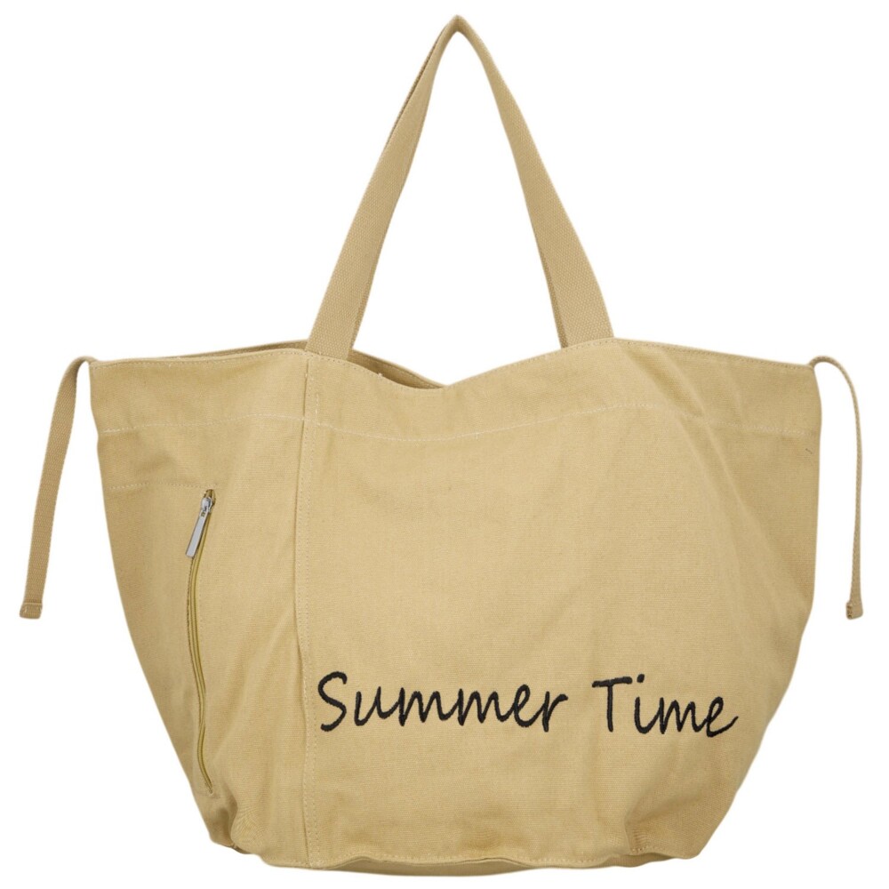 Velká textilní taška na rameno, která je připravená zvládnout vše - od letních dní u vody až po spontánní nákupy ve městě! Její lehký, ale odolný materiál a prostorný střih z ní dělají ideálního parťáka pro každodenní dobrodružství. Přední část zaujme stylovým nápisem, který dodává tašce moderní vibe, a praktickou svislou zipovou kapsu. Hlavní kapsa na zip ukrývá opravdu velkorysý prostor, kam se pohodlně vejdou plážové nezbytnosti i menší nákup. Pohodlné nošení na rameni zajišťují pevná ucha a stříbrné kování dodává celku svěží, trendy nádech. Objednejte ještě dnes a vyzkoušejte, vrátit ji můžete až za 30 dnů!