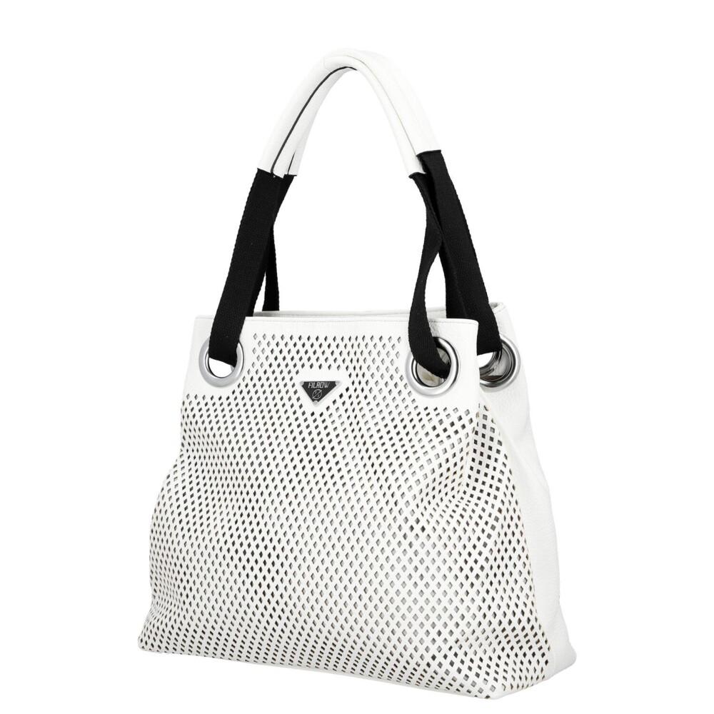 Stylová kabelka, která si vás získá na první pohled svou originální děrovanou strukturou. Vzdušný design v kombinaci s decentním logem značky působí moderně a lehce. Pevná ucha v kombinaci koženky a textilu jsou elegantně zasazena do kovových ok, což kabelce dodává šmrnc. Hlavní prostor se zapínáním na zip ukrývá prakticky členěný interiér - nechybí kapsičky v podšívce ani středová zipová kapsa pro dokonalý přehled. Na zadní straně pak najdete poslední zipovou kapsu. Stříbrné kování podtrhuje moderní vzhled a odnímatelný, nastavitelný textilní popruh vám umožní nosit kabelku přesně tak, jak vám vyhovuje. Lehká, praktická a nepřehlédnutelná. Objednejte ještě dnes a vyzkoušejte, vrátit ji můžete až do 30 dnů!
